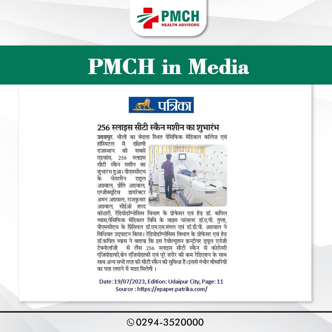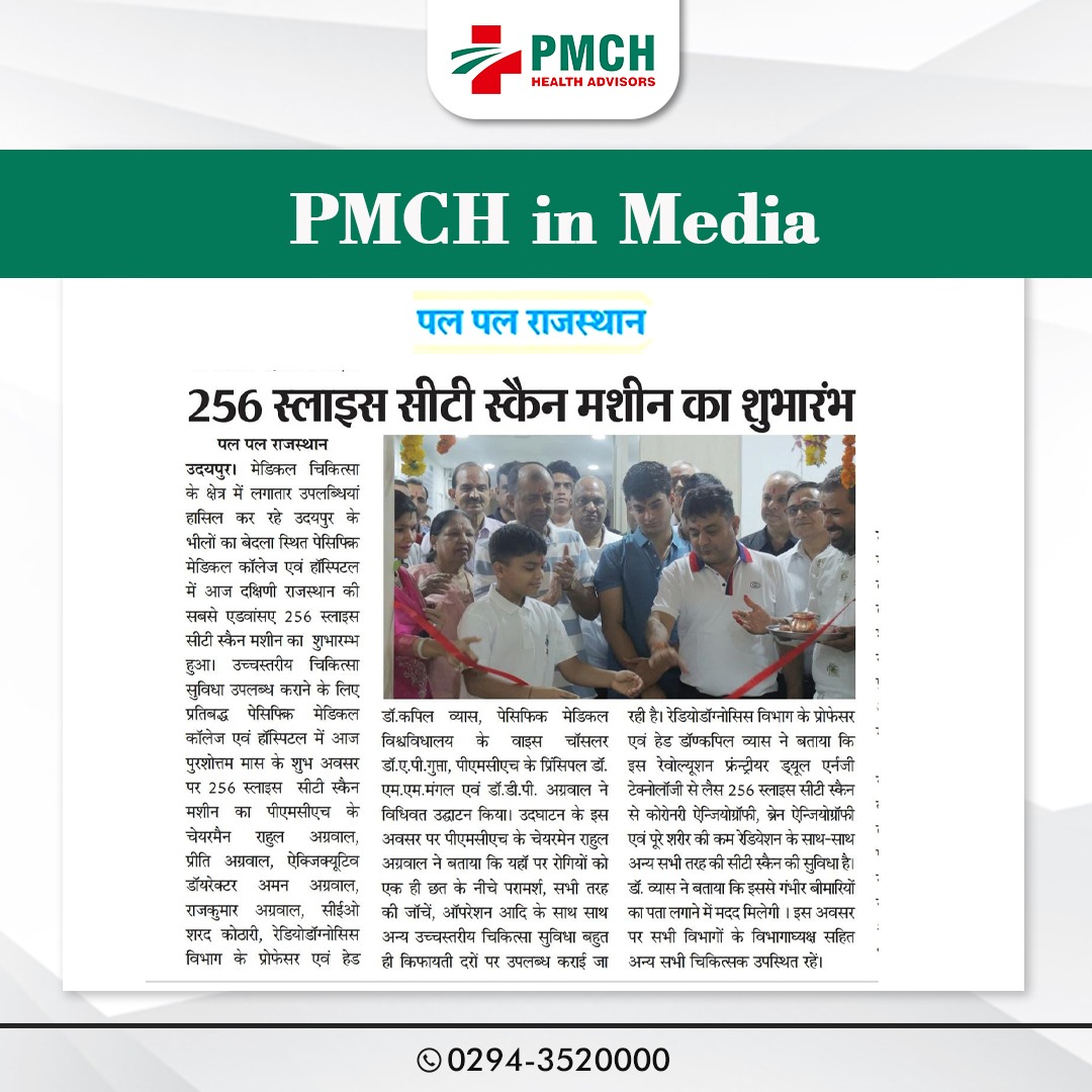 दक्षिणी राजस्थान के उदयपुर में पेसिफिक मेडिकल कॉलेज एंड हॉस्पिटल ने गंभीर बीमारियों का पता लगाने के लिए सबसे उन्नत 256-स्लाइस सीटी स्कैन मशीन का उद्घाटन किया। गंभीर बीमारियों की पहचान करने में सहायता। उदयपुर, 18 जुलाई। मेडिकल हेल्थकेयर के क्षेत्र में, पेसिफिक मेडिकल कॉलेज एंड हॉस्पिटल अपनी लगातार उपलब्धियों के लिए मशहूर उदयपुर में आज दक्षिण राजस्थान की सबसे उन्नत 256-स्लाइस सीटी स्कैन मशीन का उद्घाटन किया गया। यह उद्घाटन पुरूषोत्तम मास के शुभ अवसर पर हुआ।