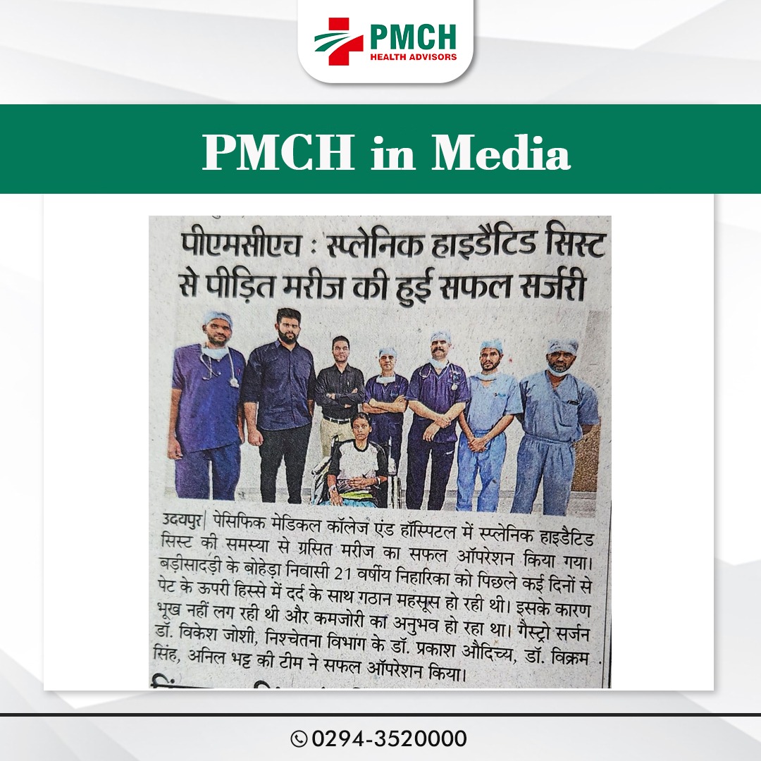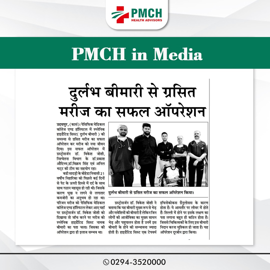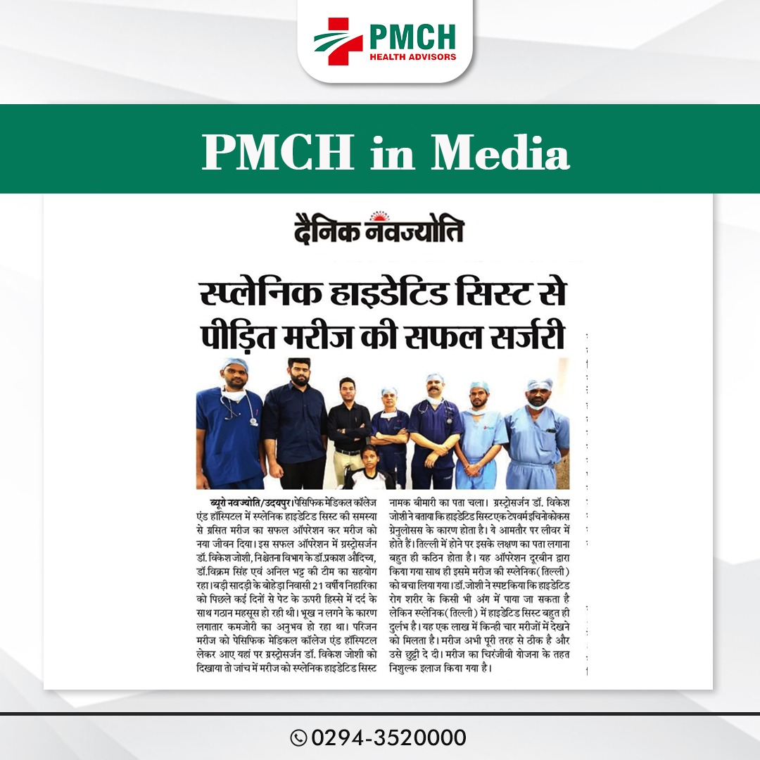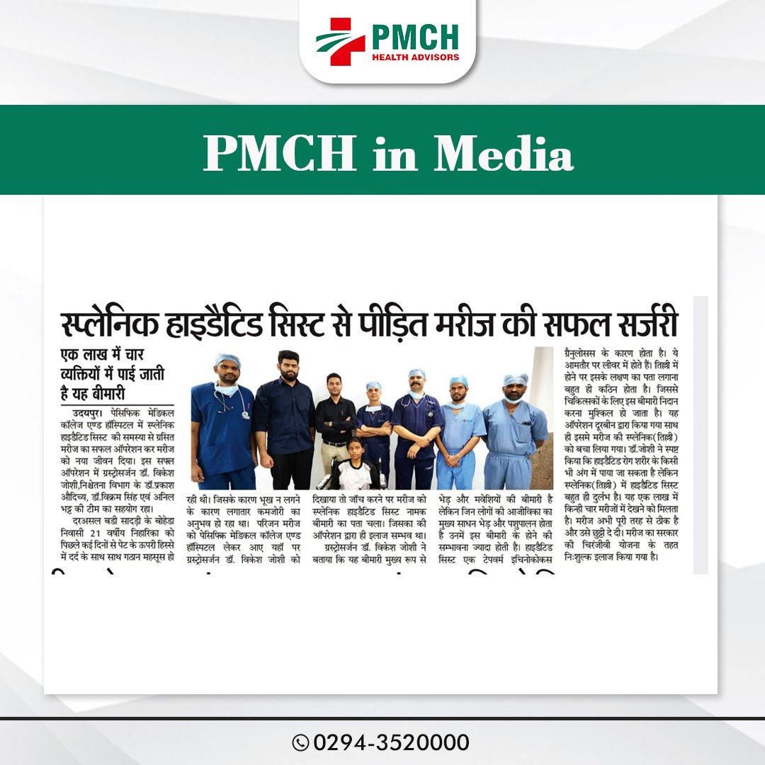 पेसिफिक मेडिकल कॉलेज एण्ड हॉस्पिटल में स्प्लेनिक हाइडैटिड सिस्ट की समस्या से ग्रसित मरीज का सफल ऑपरेशन कर मरीज को नया जीवन दिया।