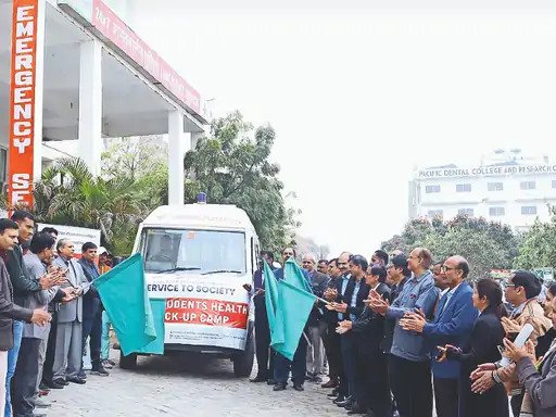 उदयपुर (Udaipur). पेसिफिक यूनिवर्सिटी, पेसिफिक मेडिकल कॉलेज एंड हॉस्पिटल तथा पेसिफिक डेंटल कॉलेज ऑफ रिसर्च सेंटर द्वारा संयुक्त रूप से संभाग भर के विभिन्न विद्यालयों में छात्र-छात्राओं के लिए पूर्णत: निःशुल्क विशाल स्वास्थ्य परीक्षण शिविर लगाए जाएंगे. सोमवार (Monday) को पहले दिन पेसिफिक समूह प्रेसिडेंट प्रो. बीपी शर्मा, पेसिफिक मेडिकल यूनिवर्सिटी के वीसी डॉ. एपी गुप्ता, पेसिफिक यूनिवर्सिटी के वीसी प्रो. केके दवे, सीईओ शरद कोठारी, प्रोफेसर हेमंत कोठारी, संयुक्त निदेशक (आरएससीईआरटी) शिवजी गौड़ तथा शिक्षा उपनिदेशक कमलेंद्र सिंह राणावत ने मोबाइल मेडिकल यूनिट और एंबुलेंस (Ambulances) को हरी झंडी दिखाकर किया.