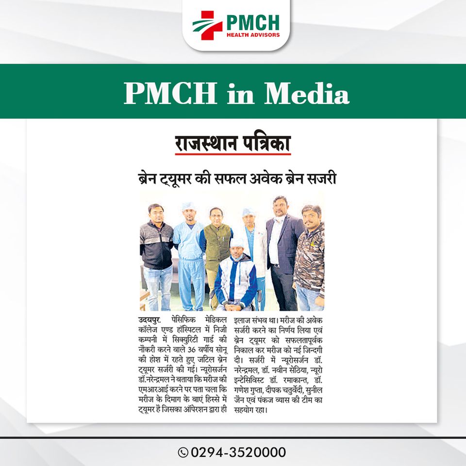рдкреЗрд╕рд┐рдлрд┐рдХ рдореЗрдбрд┐рдХрд▓ рдХреЙрд▓реЗрдЬ рдПрдВрдб рд╣реЙрд╕реНрдкрд┐рдЯрд▓ рдореЗрдВ рдирд┐рдЬреА рдХрдВрдкрдиреА рдХреЗ рд╕рд┐рдХреНрдпреЛрд░рд┐рдЯреА рдЧрд╛рд░реНрдб 36 рд╡рд░реНрд╖реАрдп рд╕реЛрдиреВ рдХреА рдЬрдЯрд┐рд▓ рдмреНрд░реЗрди рдЯрдпреВрдорд░ рд╕рд░реНрдЬрд░реА рдХреА рдЧрдИред рдСрдкрд░реЗрд╢рди рдХреЗ рджреМрд░рд╛рди рдорд░реАрдЬ рд╣реЛрд╢ рдореЗрдВ рдерд╛ред рд╡рд┐рдЬреНрдЮрд╛рди рдФрд░ рдЖрд╕реНрдерд╛ рдХрд╛ рдЕрдиреВрдард╛ рд╕рдВрдЧрдо рднреА рджреЗрдЦрдиреЗ рдХреЛ рдорд┐рд▓рд╛ред рд╕рд░реНрдЬрд░реА рдХреЗ рджреМрд░рд╛рди рдорд░реАрдЬ рдЧрд░реБрдбрд╝ рдШрдВрдЯреА рдмрдЬрд╛рддреЗ рд╣реБрдП рдЪрд┐рдХрд┐рддреНрд╕рдХ рдХреЗ рд╕рд╛рде рдмрд╛рдд рдХрд░рддрд╛ рд░рд╣рд╛ред рдиреНрдпреВрд░реЛ рд╕рд░реНрдЬрди рдбреЙ. рдирд░реЗрдВрджреНрд░ рдорд▓, рдбреЙ. рдирд╡реАрди рд╕реЗрдард┐рдпрд╛, рдиреНрдпреВрд░реЛ рдЗрдВрдЯреЗрдВрд╕рд┐рд╡рд┐рд╕реНрдЯ рдбреЙ. рд░рдорд╛рдХрд╛рдВрдд, рдбреЙ. рдЧрдгреЗрд╢ рдЧреБрдкреНрддрд╛, рджреАрдкрдХ рдЪрддреБрд░реНрд╡реЗрджреА, рд╕реБрдиреАрд▓ рдЬреИрди рдФрд░ рдкрдВрдХрдЬ рд╡реНрдпрд╛рд╕ рдХреА рдЯреАрдо рдиреЗ рдпрд╣ рд╕рд░реНрдЬрд░реА рдХреАред рдкреАрдПрдорд╕реАрдПрдЪ рдХреЗ рдЪреЗрдпрд░рдореИрди рд░рд╛рд╣реБрд▓ рдЕрдЧреНрд░рд╡рд╛рд▓ рдиреЗ рдХрд╣рд╛ рдХрд┐ рдмреЗрджрд▓рд╛ рдореЗрдВ рдорд░реАрдЬреЛрдВ рдХреЛ рдмреНрд░реЗрди рдЯреНрдпреВрдорд░ рдХреЗ рдЗрд▓рд╛рдЬ рдХреЗ рд▓рд┐рдП рдЕрд╡реЗрдХ рдмреНрд░реЗрди рд╕рд░реНрдЬрд░реА рдХреА рд╕реБрд╡рд┐рдзрд╛ рдЙрдкрд▓рдмреНрдз рд╣реИрдВред