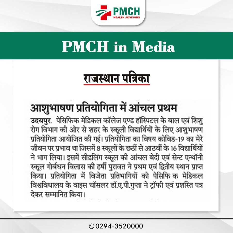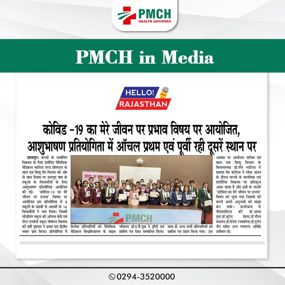 рдмрдЪреНрдЪреЛрдВ рдХреЗ рд╕рд░реНрд╡рд╛рдВрдЧреАрдг рд╡рд┐рдХрд╛рд╕ рдХреЗ рд▓рд┐рдП рд╕рдорд░реНрдкрд┐рдд рдкреЗрд╕рд┐рдлрд┐рдХ рдореЗрдбрд┐рдХрд▓ рдХреЙрд▓реЗрдЬ рдПрдВрдб рд╣реЙрд╕реНрдкрд┐рдЯрд▓ рдХреЗ рдмрд╛рд▓ рдПрд╡рдВ рд╢рд┐рд╢реБ рд░реЛрдЧ рд╡рд┐рднрд╛рдЧ рдХреА рдУрд░ рд╕реЗ рдмрд╛рд▓ рджрд┐рд╡рд╕ рдкрд░ рдЙрджрдпрдкреБрд░ рд╢рд╣рд░ рдХреЗ рд╕реНрдХреВрд▓реЛрдВ рдХреЗ рд╡рд┐рджреНрдпрд╛рд░реНрдерд┐рдпреЛрдВ рдХреЗ рд▓рд┐рдП рдЖрд╢реБрднрд╛рд╖рдг рдкреНрд░рддрд┐рдпреЛрдЧрд┐рддрд╛ рдЖрдпреЛрдЬрд┐рдд рдХреА рдЧрдИред 'рдХреЛрд╡рд┐рдб-19 рдХрд╛ рдореЗрд░реЗ рдЬреАрд╡рди рдкрд░ рдкреНрд░рднрд╛рд╡' рд╡рд┐рд╖рдп рдкрд░ рдЖрдпреЛрдЬрд┐рдд рдЗрд╕ рдкреНрд░рддрд┐рдпреЛрдЧрд┐рддрд╛ рдореЗрдВ 8 рд╕реНрдХреВрд▓реЛрдВ рдХреЗ рдЫрдард╡реАрдВ рд╕реЗ рдЖрдард╡реАрдВ рдХреЗ 16 рд╡рд┐рджреНрдпрд╛рд░реНрдерд┐рдпреЛрдВ рдиреЗ рднрд╛рдЧ рд▓рд┐рдпрд╛ред рдЬрд┐рд╕рдореЗрдВ рд╕реАрдбрд▓рд┐рдВрдЧ рд╕реНрдХреВрд▓ рдХреА рдЖрдВрдЪрд▓ рдмреЗрджреА рдПрд╡рдВ рд╕реЗрдВрдЯ рдПрдВрдереЛрдиреА рд╕реНрдХреВрд▓ рдЧреЛрд╡рд░реНрдзрди рд╡рд┐рд▓рд╛рд╕ рдХреА рд╣рд░реНрд╖рд┐ рдкреБрд░рд╛рд╡рдд рдиреЗ рдкреНрд░рдердо рдПрд╡рдВ рджреНрд╡рд┐рддреАрдп рд╕реНрдерд╛рди рдкреНрд░рд╛рдкреНрдд рдХрд┐рдпрд╛ред