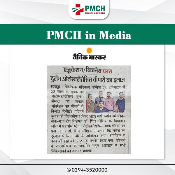 उदयपुर पेसिफिक मेडिकल कॉलेज एण्ड हॉस्पिटल के कान नाक गला रोग विभाग में 23 वर्षीय युवक का ओटोस्क्लेरोसिस नामक दुर्लभ बीमारी का ऑपरेशन कर मरीज को इस गंभीर बीमारी से निजात दिलाई। इस सफल उपचार में कान, नाक एवं गला रोग विभाग के विभाग डॉ. पी.सी. जैन, डॉ. राजेन्द्र गोरवाडा, डॉ. शिव कौशिक, प्रकाश आदित्य, डॉ विक्रम एवं अनिल भट्ट की टीम का सहयोग रहा। दर असल नीमच निवासी 23 वर्षीय युवक को पिछले लम्बे समय से सुनाई न देने की समस्या थी।