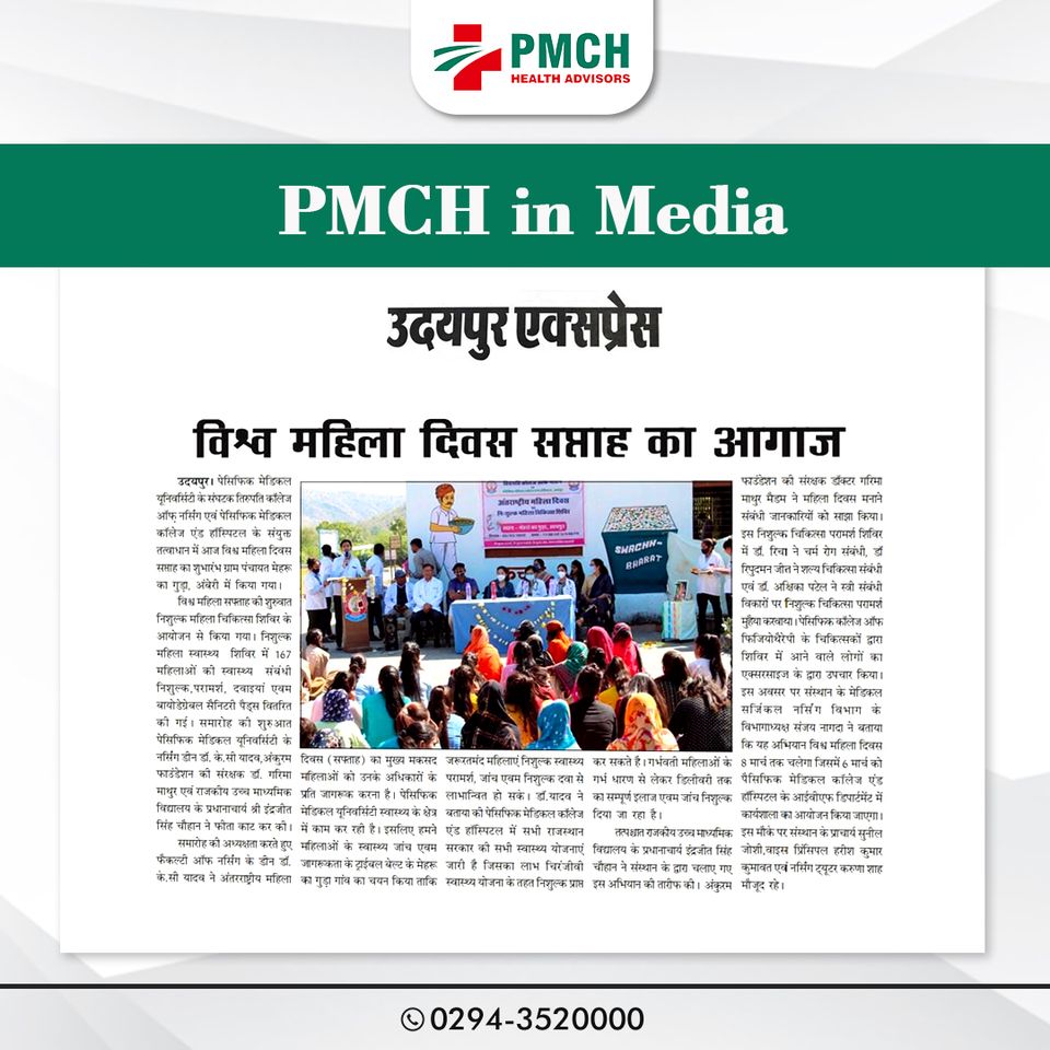 उदयपुर,6 मार्च। पेसिफिक मेडिकल यूनिवर्सिटी के संघटक तिरुपति कॉलेज ऑफ नर्सिंग एवं पेसिफिक मेडिकल कॉलेज एंड हॉस्पिटल के संयुक्त तत्वाधान में ग्राम पंचायत मेहरों का गुड़ा, अंबेरी में आज विश्व महिला दिवस सप्ताह का शुभारंभ किया गया। इस अवसर पर निशुल्क महिला चिकित्सा शिविर का आयोजन किया गया। इस दौरान 167 महिलाओं को निशुल्क,परामर्श, दवाइयां एवं बायोडेग्रेबल सैनिटरी पैड्स वितरित किए गए। कार्यक्रम की शुरुआत नर्सिंग काॅलेज के डीन डॉ. के.सी यादव,अंकुरम फाउंडेशन की संरक्षक डॉ. गरिमा माथुर एवं राजकीय उच्च माध्यमिक विद्यालय के प्रधानाचार्य इंद्रजीत सिंह चैहान ने फीता काट कर किया। इस अवसर पर डॉ. के.सी यादव ने बताया कि अंतरराष्ट्रीय महिला दिवस (सफ्ताह) का मुख्य मकसद महिलाओं को उनके अधिकारों के प्रति जागरूक करना है। क्योंकि महिला की भागीदारी के बिना परिवार और समाज का समग्र विकास संभव नही है। महिला परिवार के सभी सदस्यों के स्वास्थ्य का ख्याल रखती है। डॉ.यादव ने स्पश्ट किया पेसिफिक मेडिकल कॉलेज एंड हॉस्पिटल में सभी राजस्थान सरकार की सभी स्वास्थ्य योजनाएं जारी है जिसका लाभ चिरंजीवी स्वास्थ्य योजना के तहत निशुल्क प्राप्त कर सकते है। साथ ही गर्भवती महिलाओं के गर्भ धारण से लेकर डिलीवरी तक का सम्पूर्ण इलाज एवम जांच निशुल्क दिया जा रहा है। ठस दौरान राजकीय उच्च माध्यमिक विद्यालय के प्रधानाचार्य इंद्रजीत सिंह चैहान ने संस्थान के द्वारा चलाए गए इस अभियान की तारीफ करते हुए कहा कि संस्थान ने ऐसे विषय को चुना जिससे परिवार,परिवार से समाज, समाज से राज्य एवं राज्य से पूरे राष्ट्र को मजबूत किया जा सकता है.। इससे समाज के अंदर एक नई जागृति आएगी एवं महिला स्वास्थ्य के प्रति के सभी का रवैया बदलेगा, महिलाओं के पोषण संबंधी जानकारियों के लिए उन्होंने पेसिफिक मेडिकल यूनिवर्सिटी का धन्यवाद प्रेषित किया। अंकुरम फाउंडेशन की संरक्षक डॉक्टर गरिमा माथुर ने महिला दिवस मनाने संबंधी जानकारियों को साझा किया एवं कहा कि नारी और प्रकृति कभी भी अलग नहीं थे जैसे प्रकृति हमें जीवन देती है वैसे ही नारी हमें जीवन प्रदान करती है एवं सभी महिलाओं के यह सौभाग्य प्राप्त है कि वह मां बन सकती है। इस मौके पर संस्थान के प्राचार्य सुनील जोशी,वाइस प्रिंसिपल हरीश कुमार कुमावत एवं नर्सिंग ट्यूटर करुणा शाह मौजूद रहे।