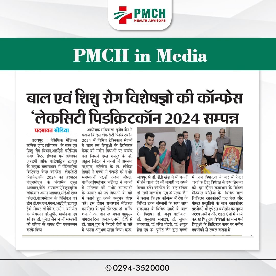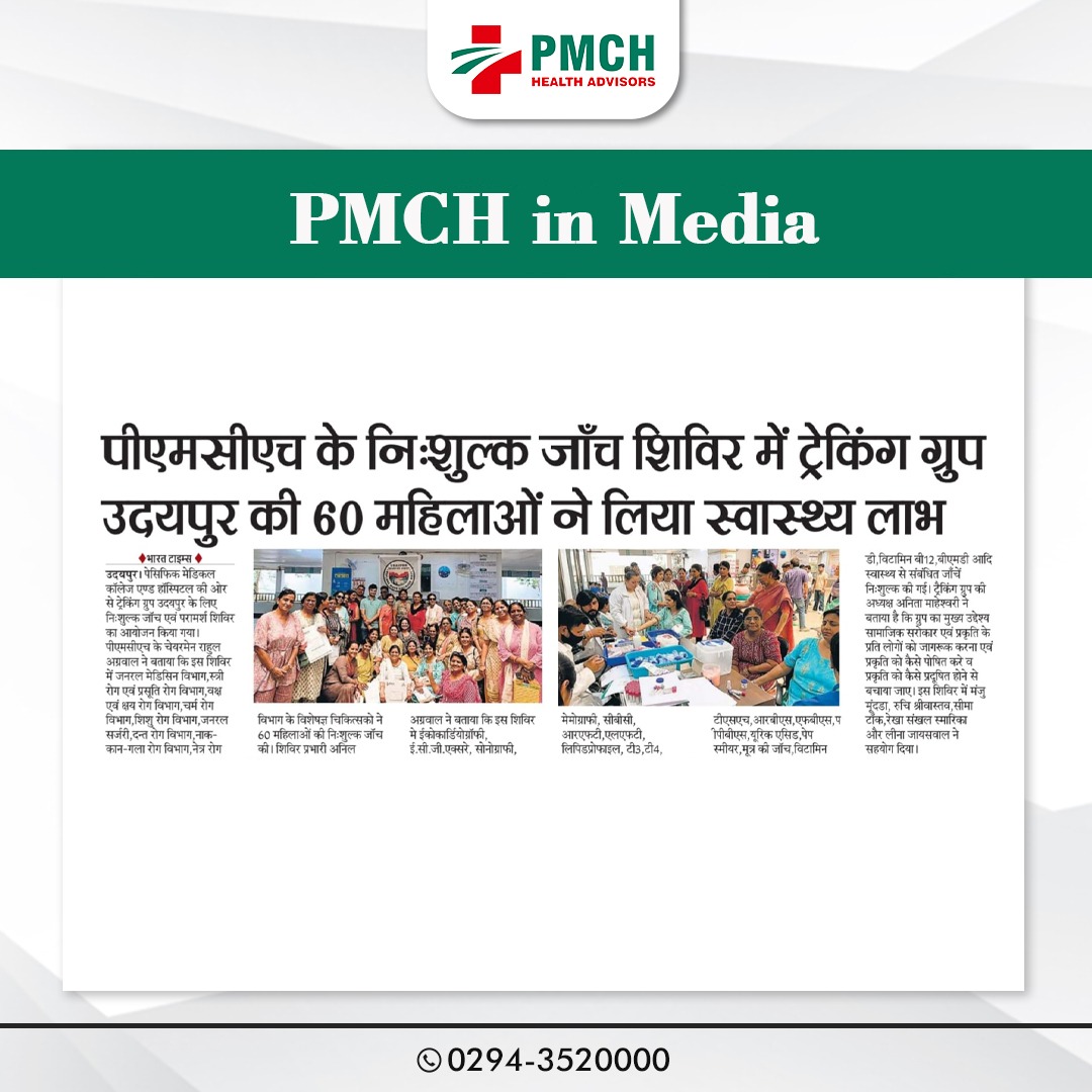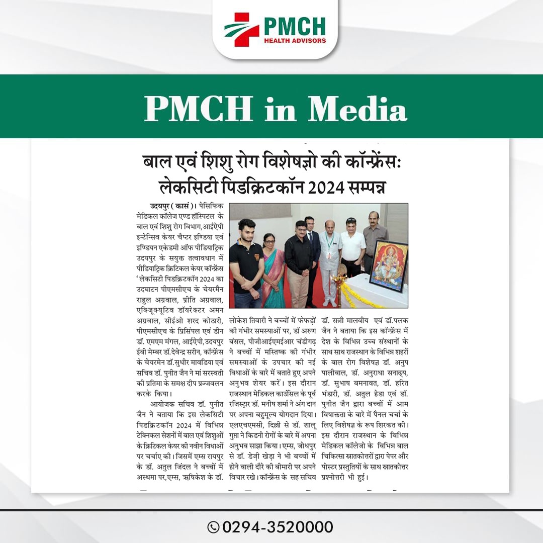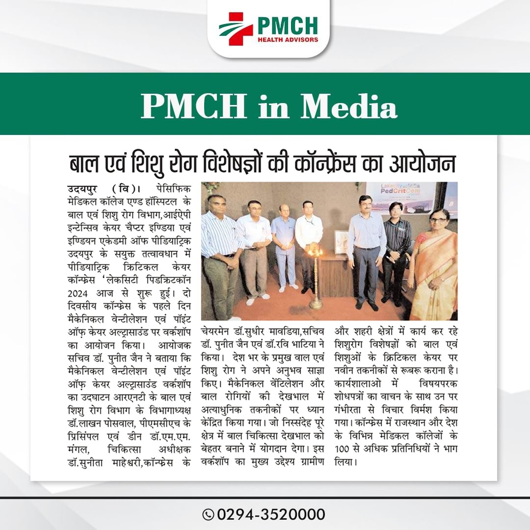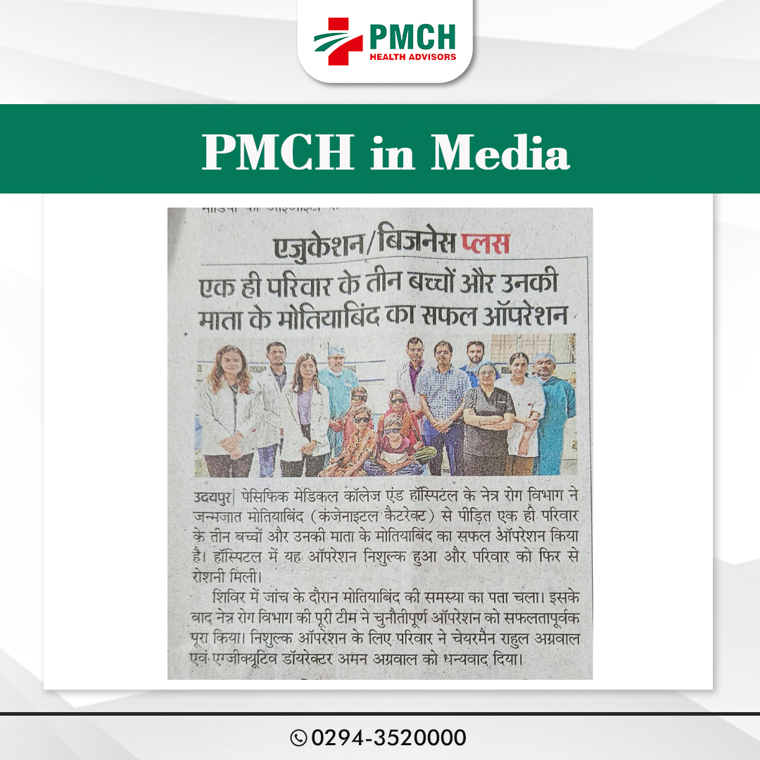 पेसिफिक मेडिकल कॉलेज एवं हॉस्पिटल (PMCH) को एनएबीएच के 5वें संस्करण की पूर्ण मान्यता प्राप्त हुई है! यह मान्यता हमारे मरीजों को सर्वोच्च स्तर की सुरक्षा और गुणवत्तापूर्ण स्वास्थ्य सेवाएं प्रदान करने के प्रति हमारी प्रतिबद्धता का प्रमाण है। हम उदयपुर और दक्षिणी राजस्थान के लोगों को विश्वस्तरीय चिकित्सा सुविधाएं किफायती दरों पर उपलब्ध कराने के लिए निरंतर समर्पित हैं। आपका विश्वास हमारी ताकत है, और हम आपके लिए बेहतर स्वास्थ्य सेवाएं देने के लिए प्रतिबद्ध हैं।