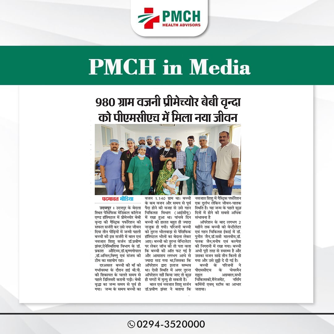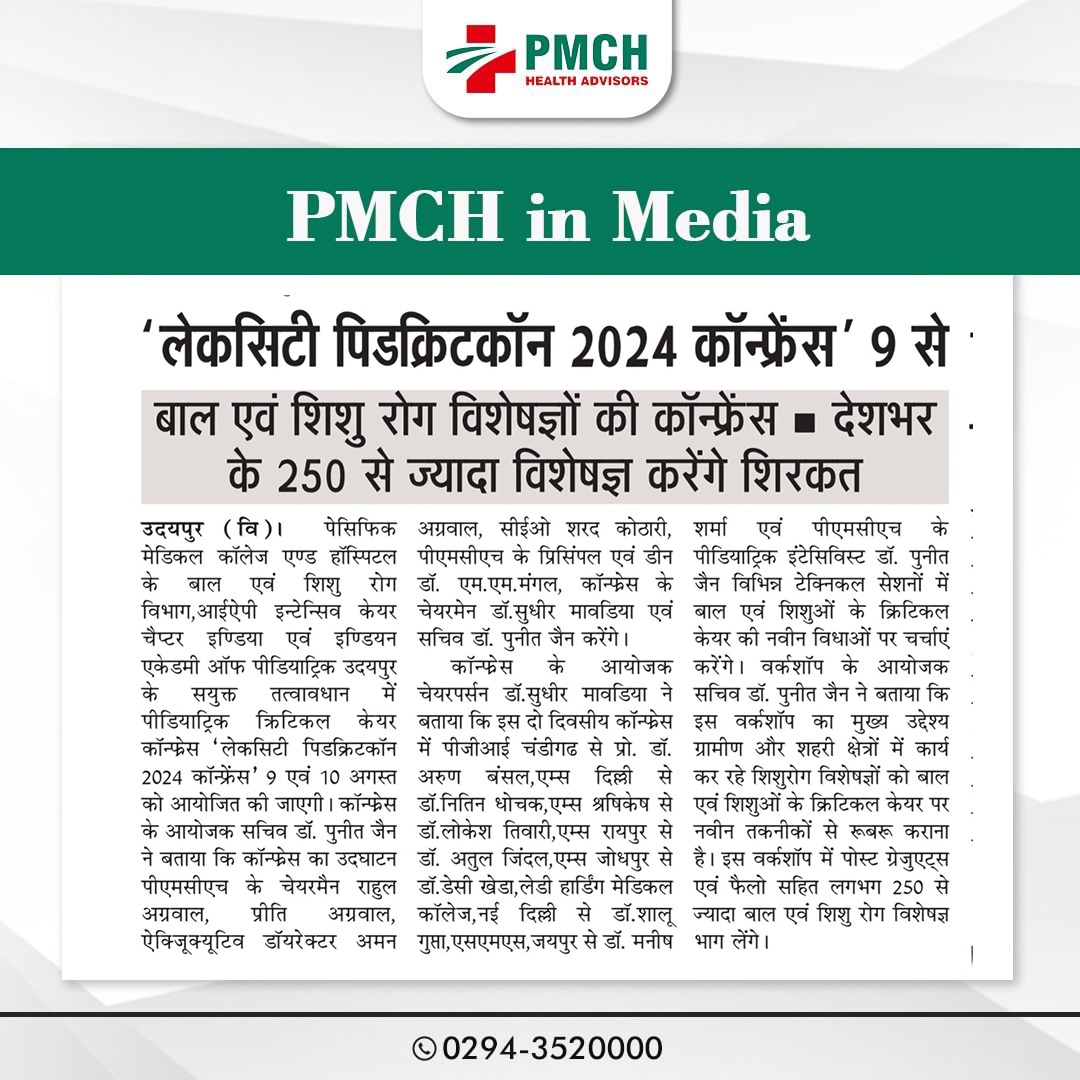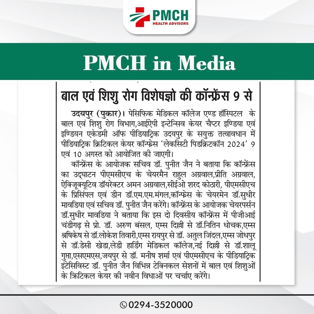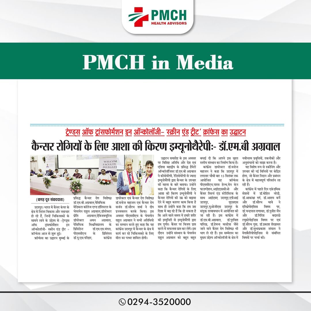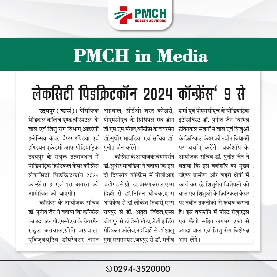 पेसिफिक मेडिकल कॉलेज एवं हॉस्पिटल (PMCH) को एनएबीएच के 5वें संस्करण की पूर्ण मान्यता प्राप्त हुई है! यह मान्यता हमारे मरीजों को सर्वोच्च स्तर की सुरक्षा और गुणवत्तापूर्ण स्वास्थ्य सेवाएं प्रदान करने के प्रति हमारी प्रतिबद्धता का प्रमाण है। हम उदयपुर और दक्षिणी राजस्थान के लोगों को विश्वस्तरीय चिकित्सा सुविधाएं किफायती दरों पर उपलब्ध कराने के लिए निरंतर समर्पित हैं। आपका विश्वास हमारी ताकत है, और हम आपके लिए बेहतर स्वास्थ्य सेवाएं देने के लिए प्रतिबद्ध हैं।