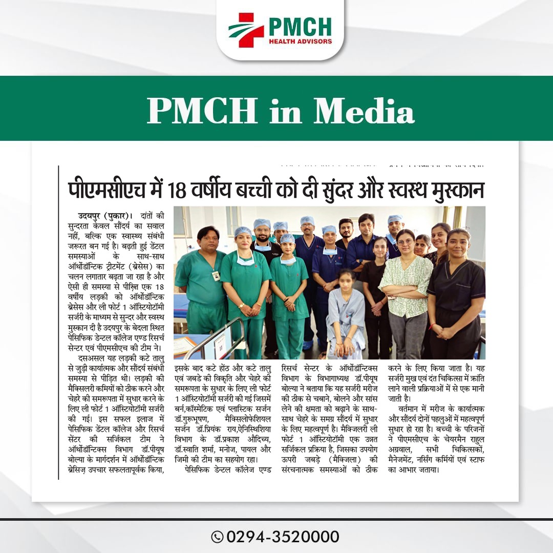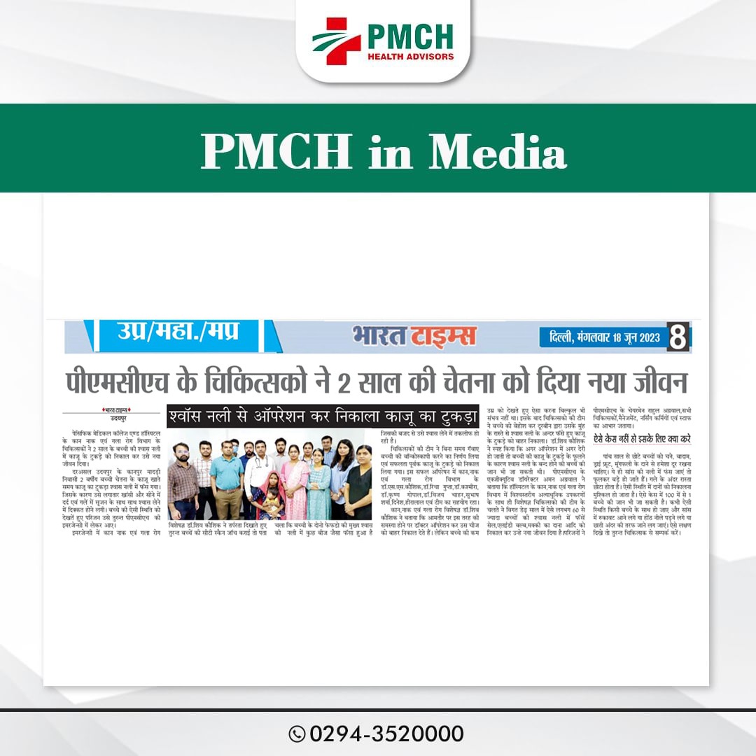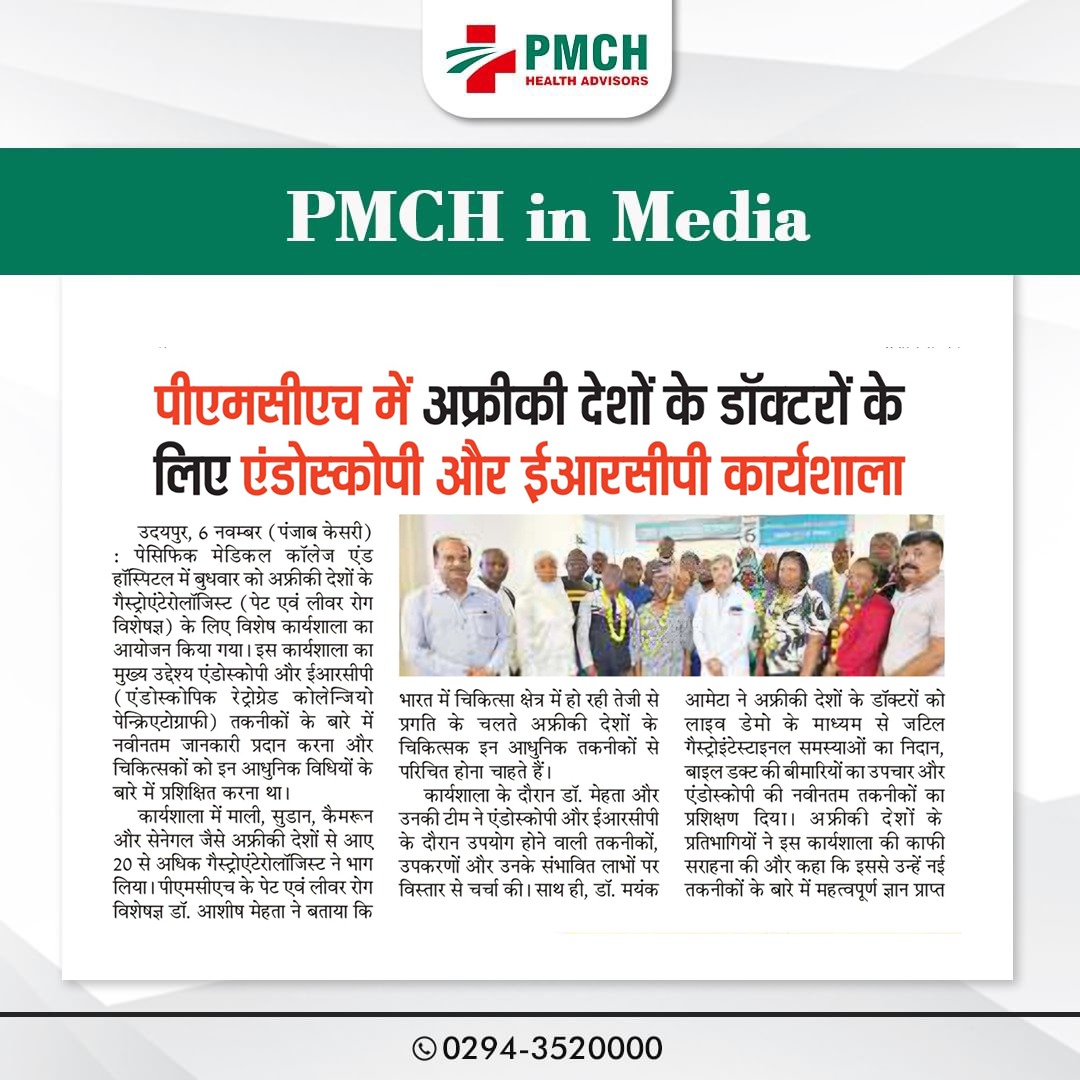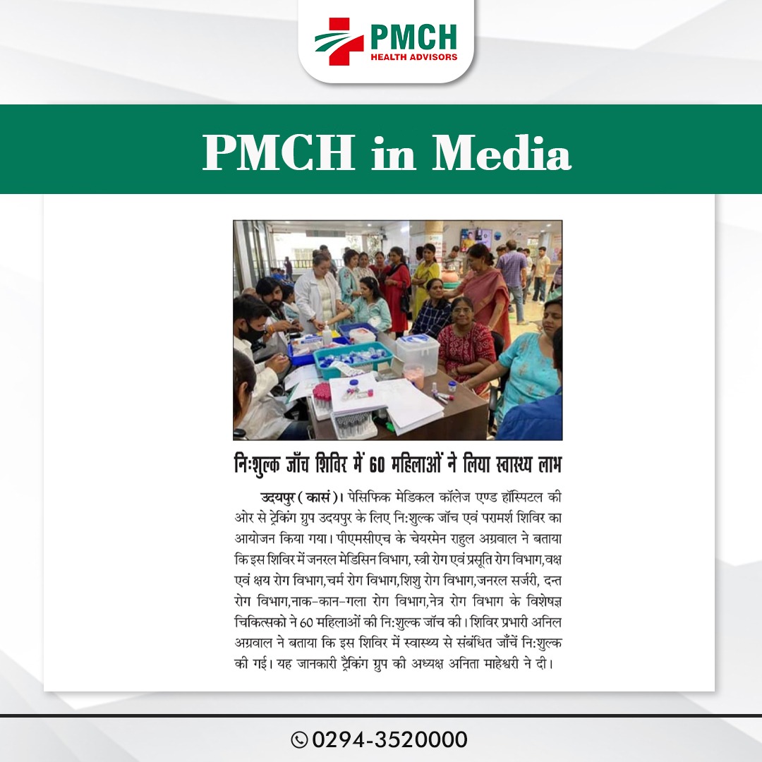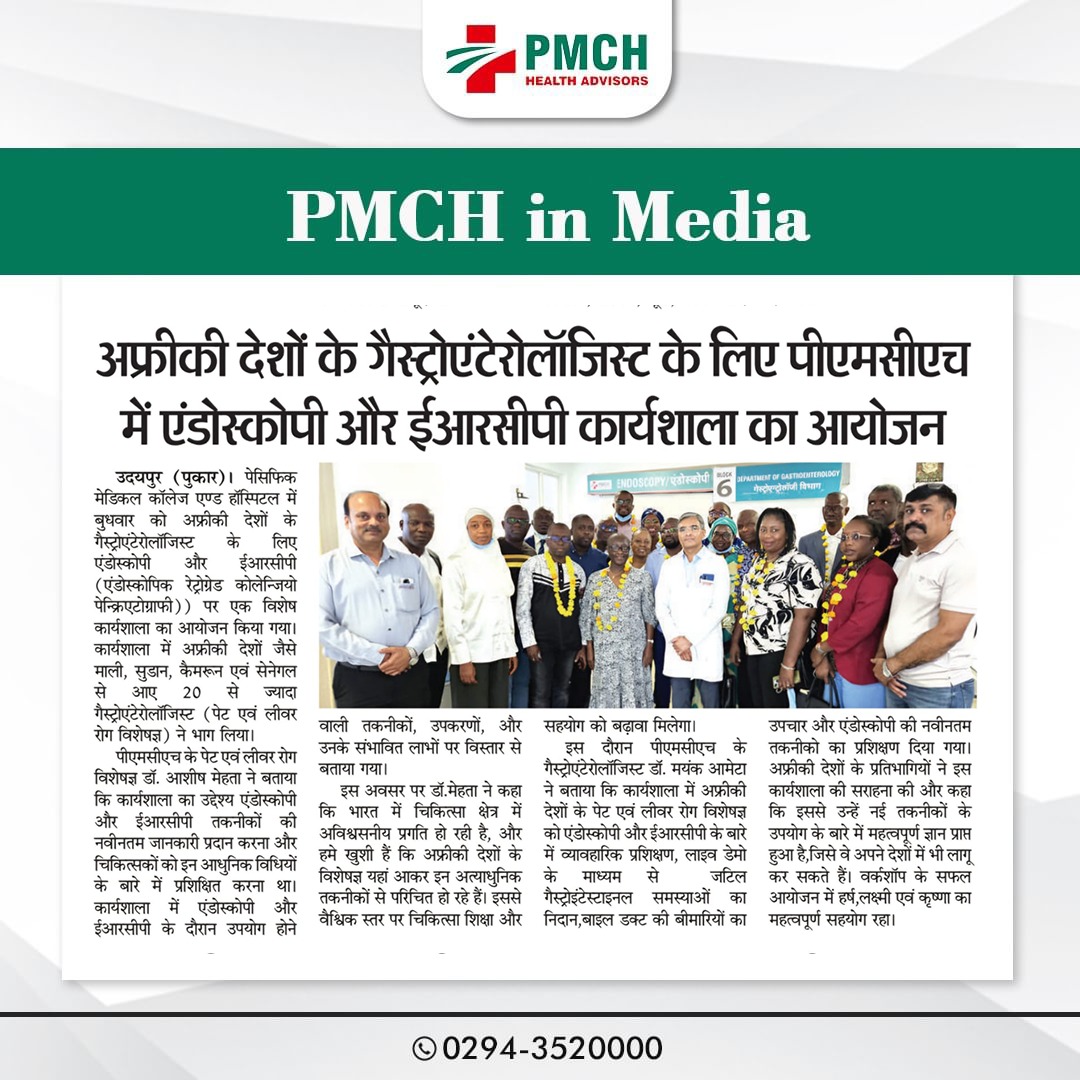 पेसिफिक मेडिकल कॉलेज एवं हॉस्पिटल (PMCH) को एनएबीएच के 5वें संस्करण की पूर्ण मान्यता प्राप्त हुई है! यह मान्यता हमारे मरीजों को सर्वोच्च स्तर की सुरक्षा और गुणवत्तापूर्ण स्वास्थ्य सेवाएं प्रदान करने के प्रति हमारी प्रतिबद्धता का प्रमाण है। हम उदयपुर और दक्षिणी राजस्थान के लोगों को विश्वस्तरीय चिकित्सा सुविधाएं किफायती दरों पर उपलब्ध कराने के लिए निरंतर समर्पित हैं। आपका विश्वास हमारी ताकत है, और हम आपके लिए बेहतर स्वास्थ्य सेवाएं देने के लिए प्रतिबद्ध हैं।