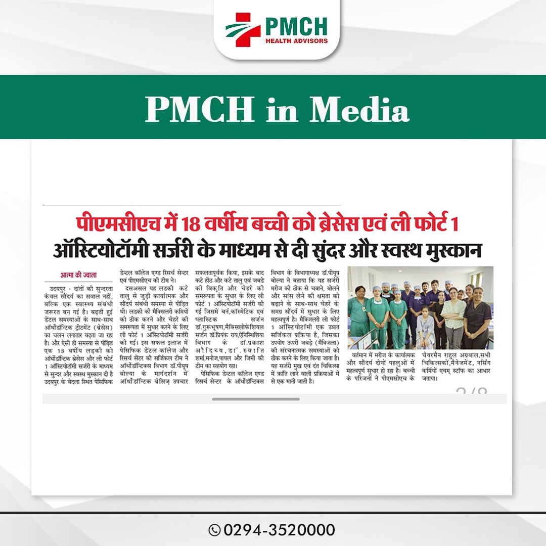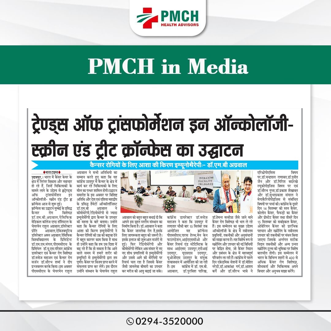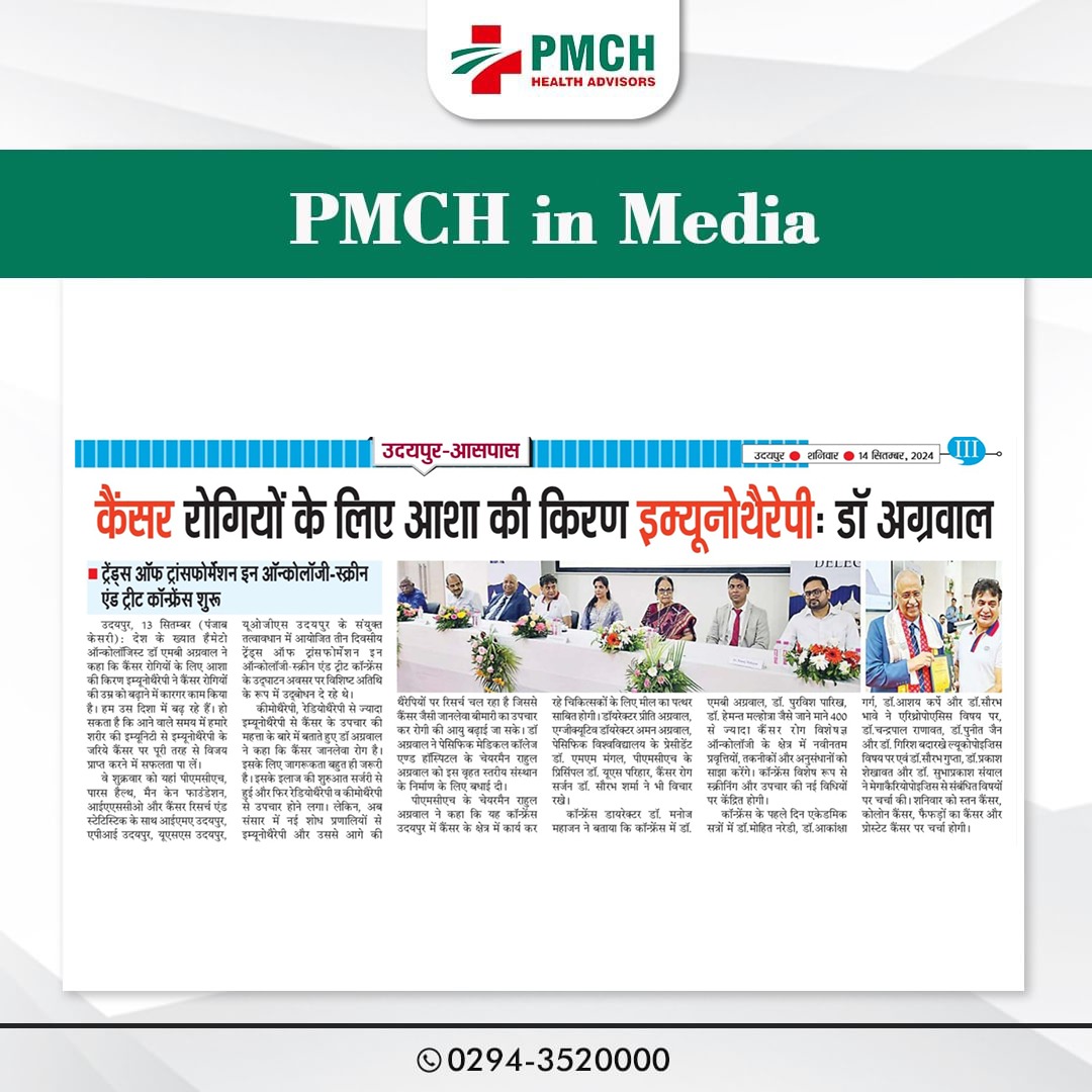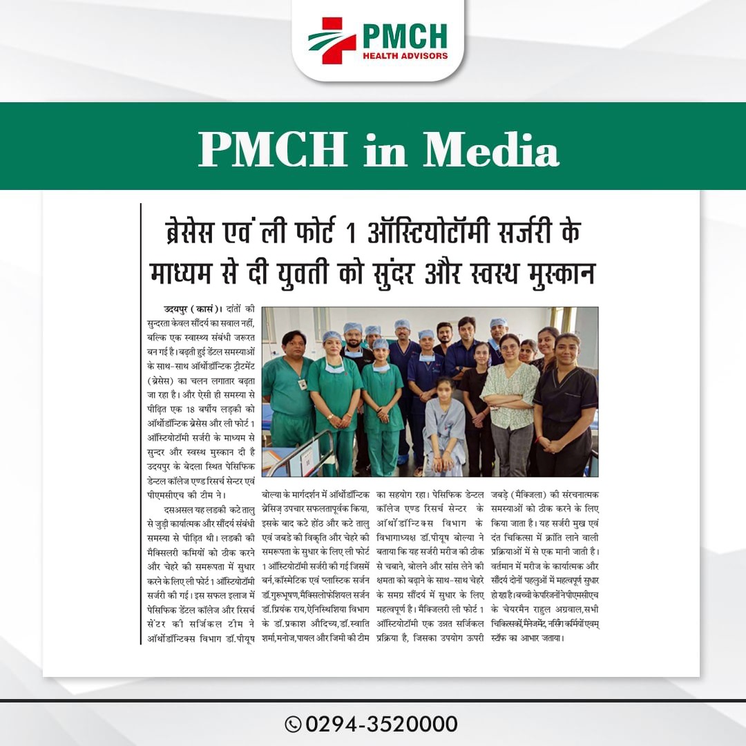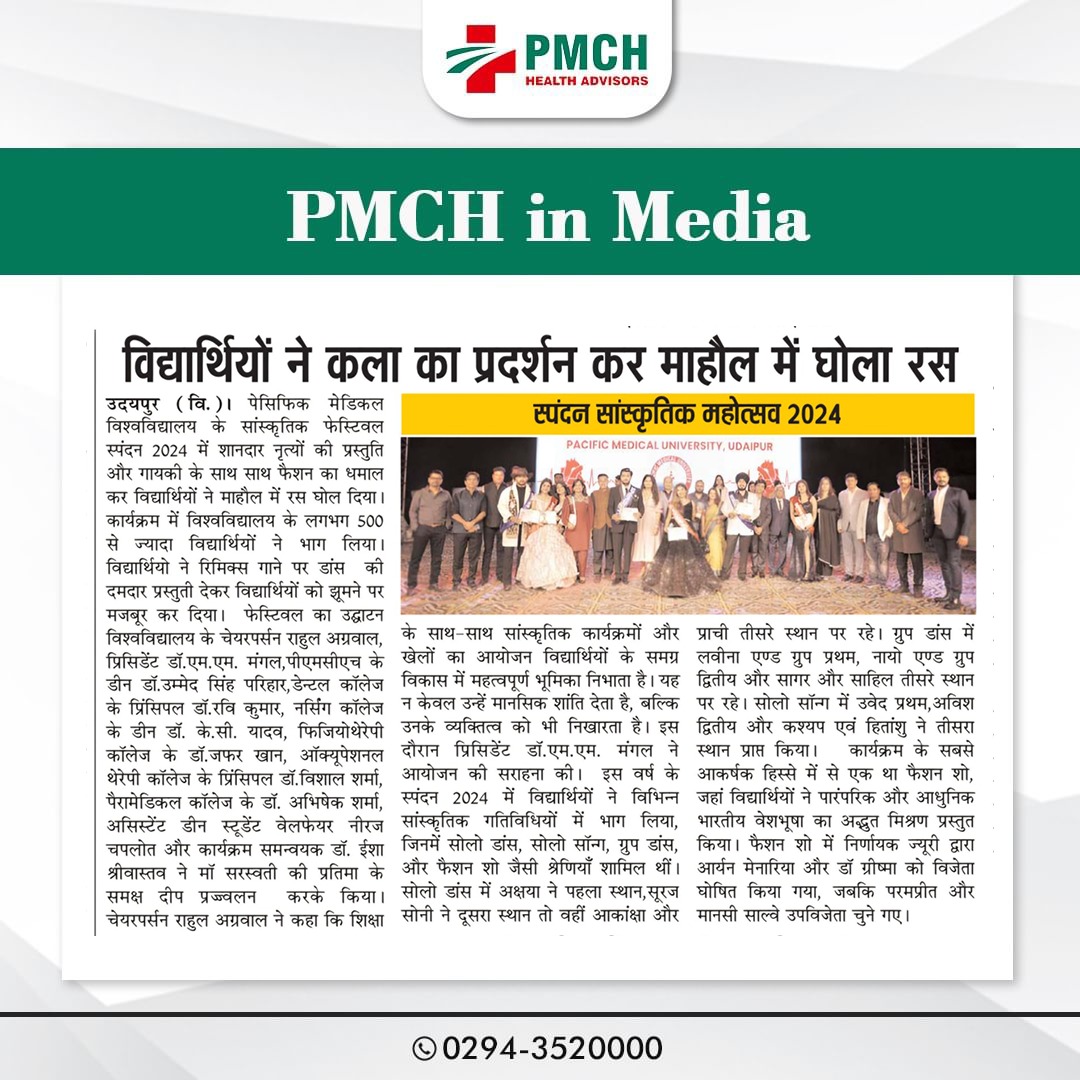 पेसिफिक मेडिकल कॉलेज एवं हॉस्पिटल (PMCH) को एनएबीएच के 5वें संस्करण की पूर्ण मान्यता प्राप्त हुई है! यह मान्यता हमारे मरीजों को सर्वोच्च स्तर की सुरक्षा और गुणवत्तापूर्ण स्वास्थ्य सेवाएं प्रदान करने के प्रति हमारी प्रतिबद्धता का प्रमाण है। हम उदयपुर और दक्षिणी राजस्थान के लोगों को विश्वस्तरीय चिकित्सा सुविधाएं किफायती दरों पर उपलब्ध कराने के लिए निरंतर समर्पित हैं। आपका विश्वास हमारी ताकत है, और हम आपके लिए बेहतर स्वास्थ्य सेवाएं देने के लिए प्रतिबद्ध हैं।