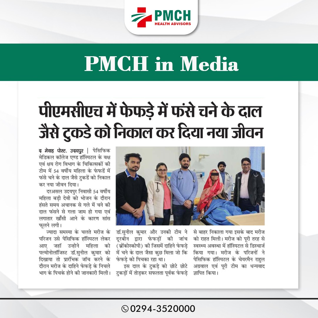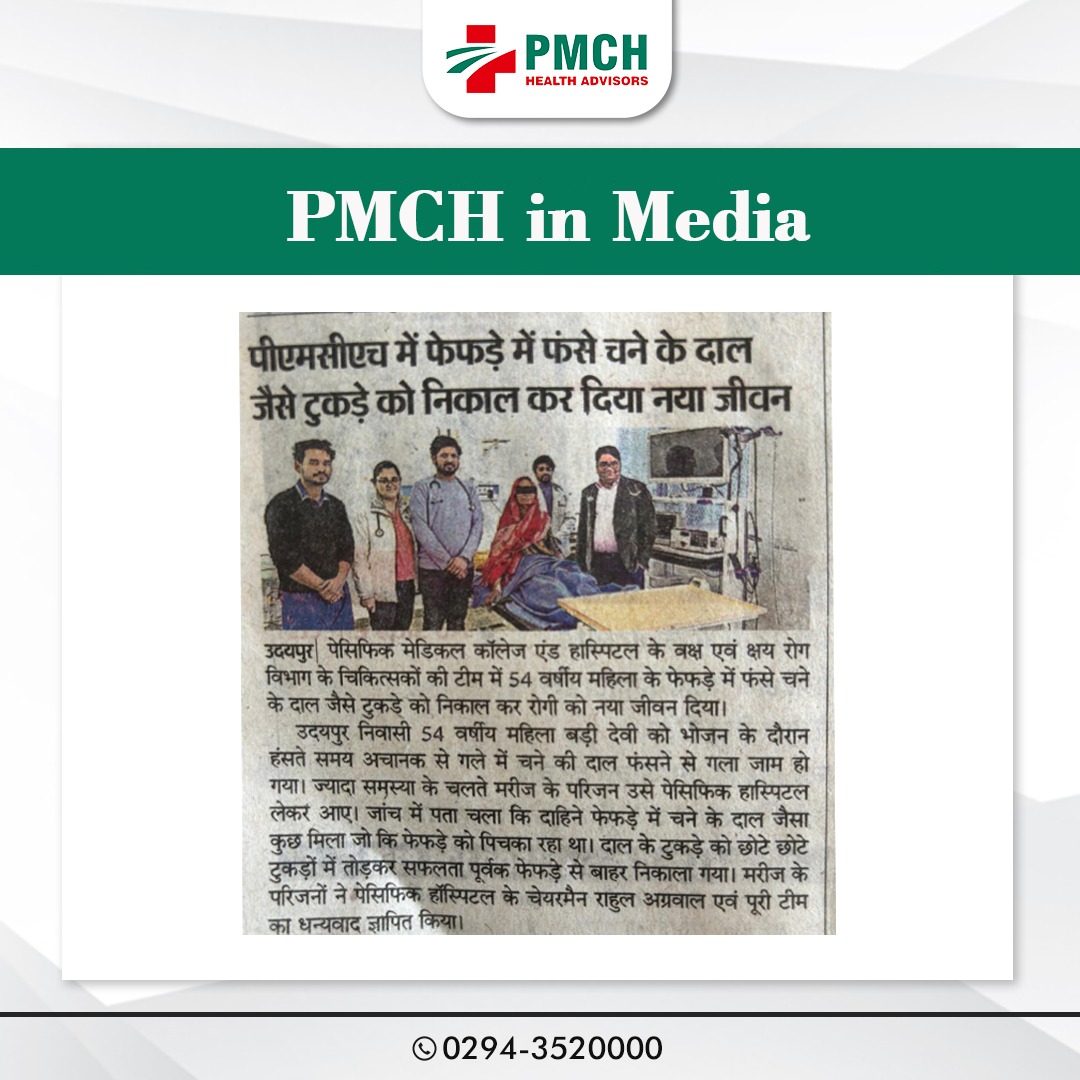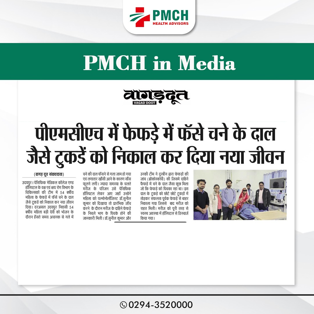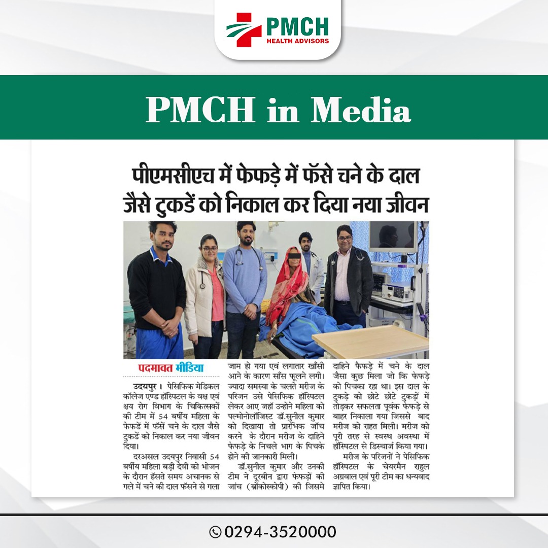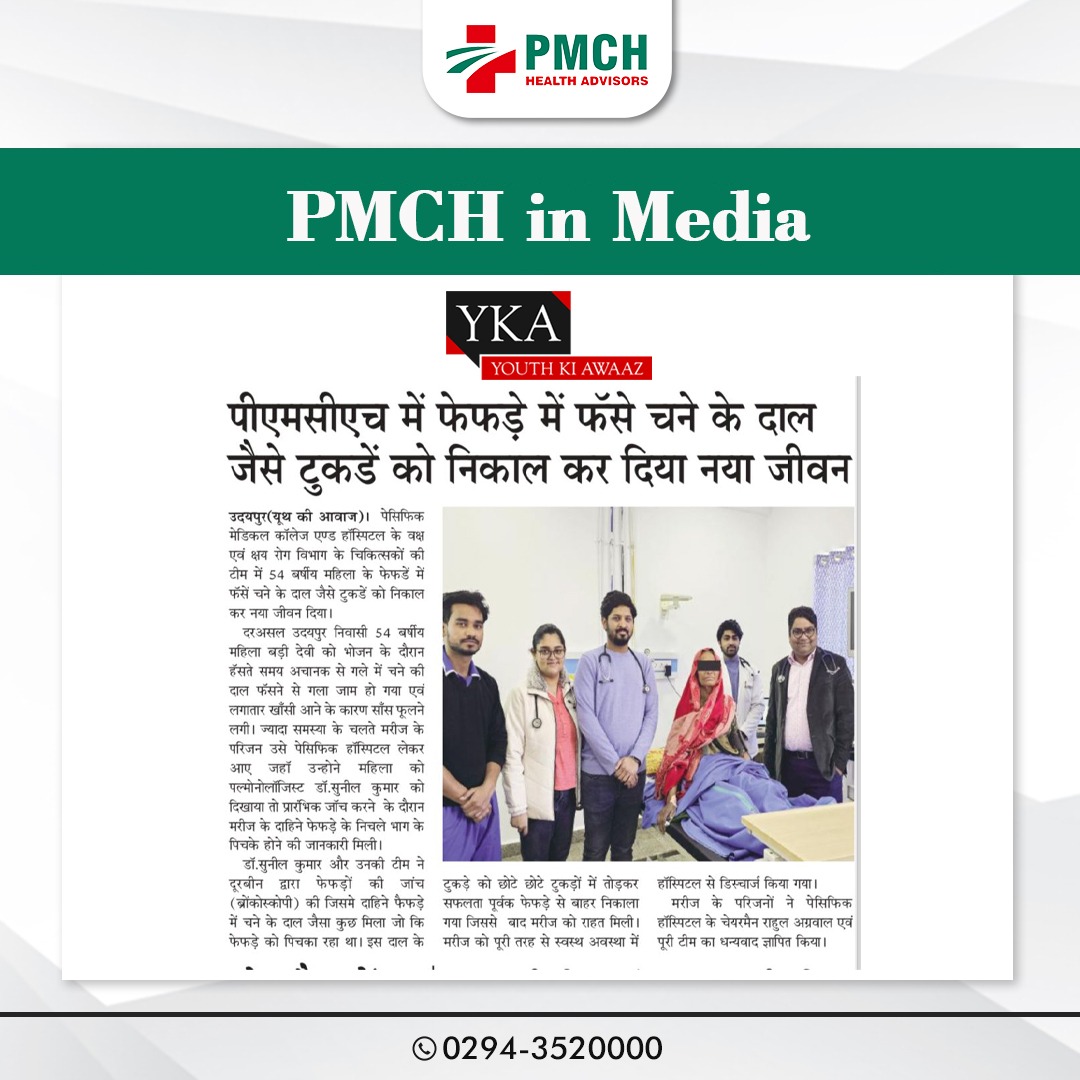 पेसिफिक मेडिकल कॉलेज एण्ड हॉस्पिटल के वक्ष एवं क्षय रोग विभाग के चिकित्सकों की टीम में 54वर्षीय महिला के फेफड़े में फंसे चने के दाल जैसे टुकडें को निकाल कर नया जीवन दिया।