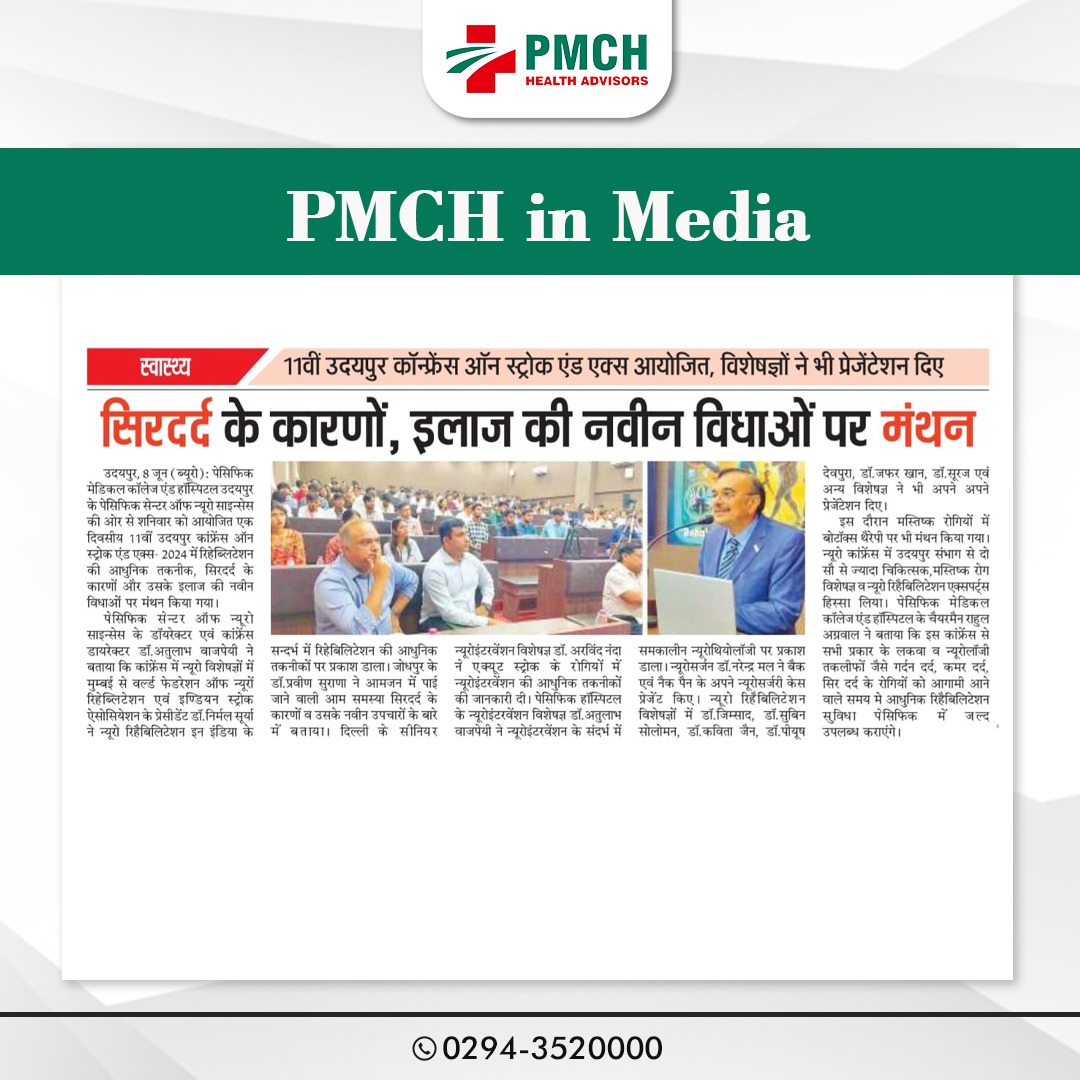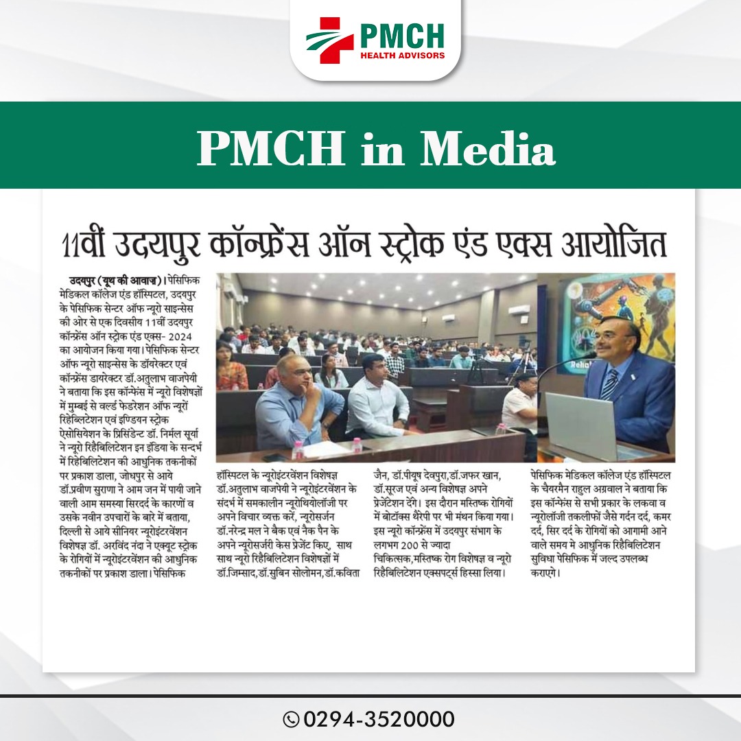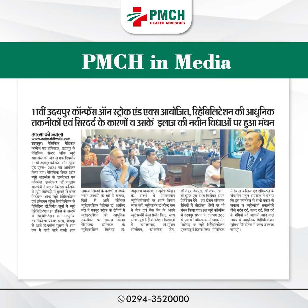 उदयपुर में PMCH स्ट्रोक और एक्स कॉन्फ्रेंस 2024 रिहेबिलिटेशन की आधुनिक तकनीक एवं सिरदर्द के कारणों पर मंथन!