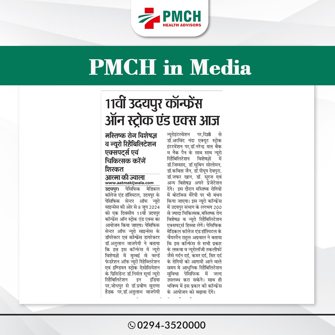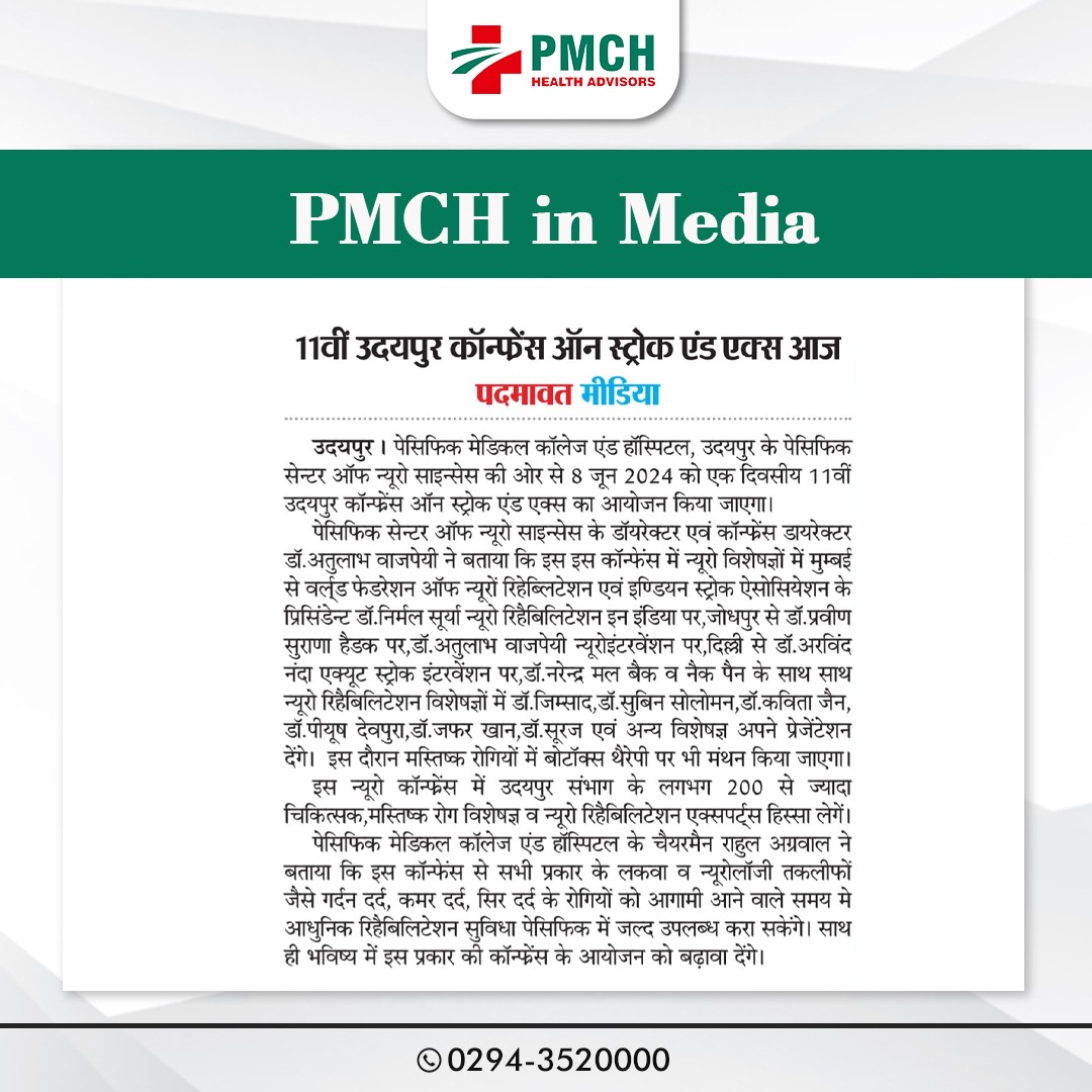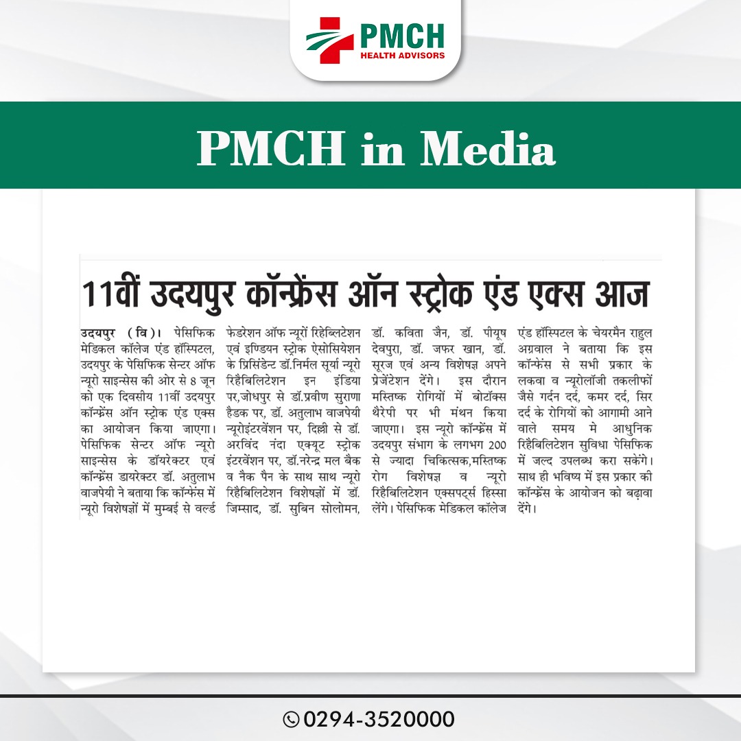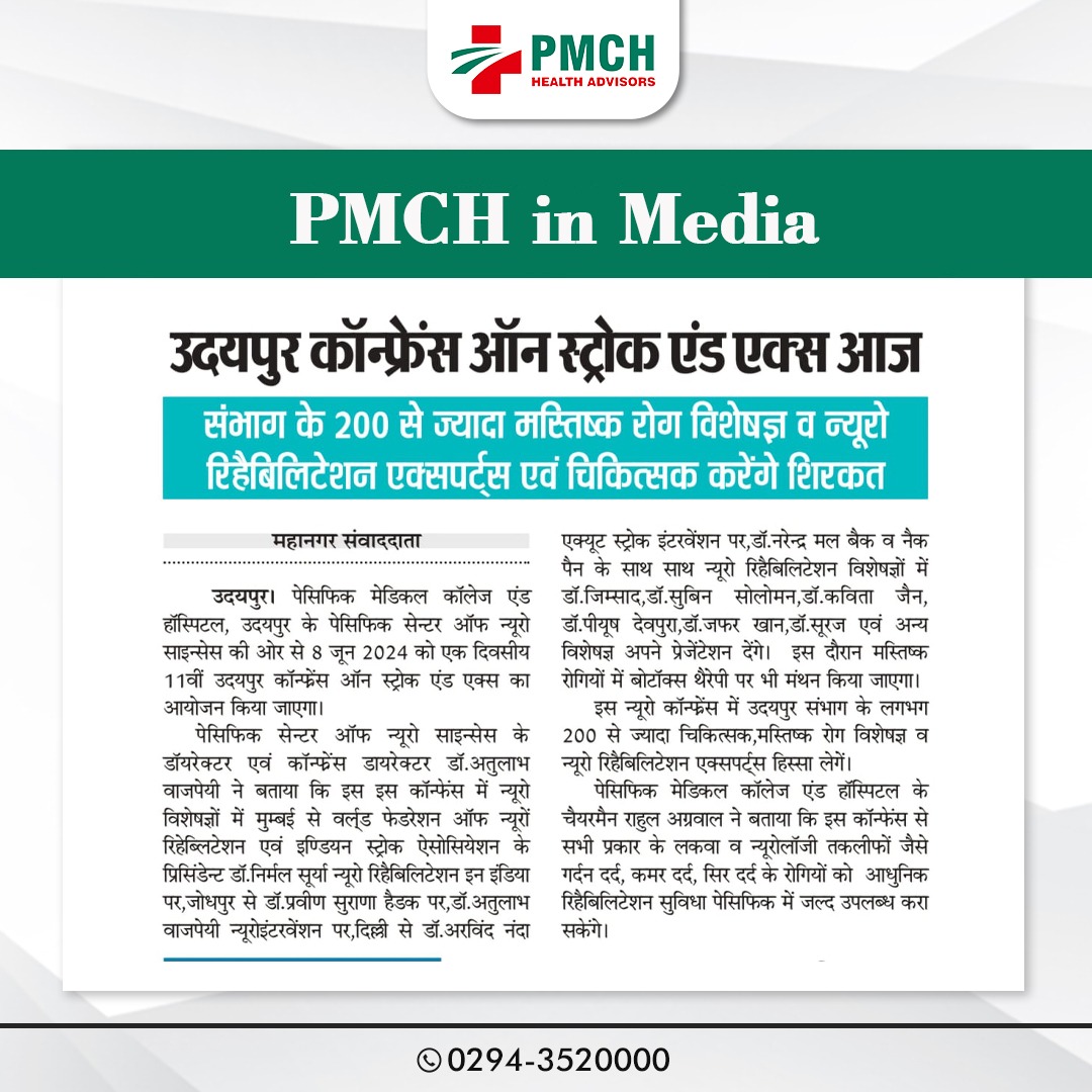 उदयपुर में PMCH स्ट्रोक और एक्स कॉन्फ्रेंस 2024 रिहेबिलिटेशन की आधुनिक तकनीक एवं सिरदर्द के कारणों पर मंथन!