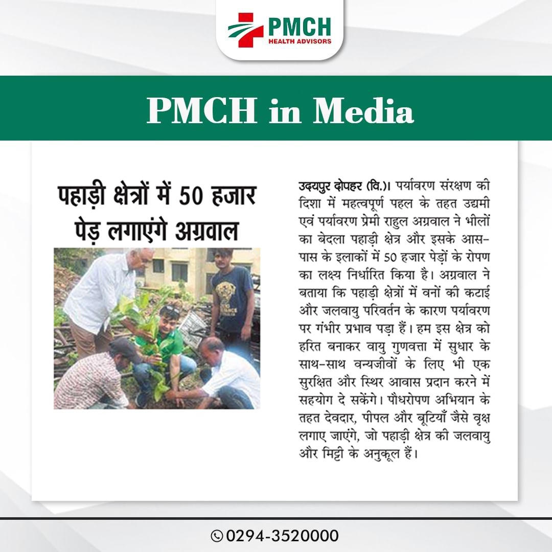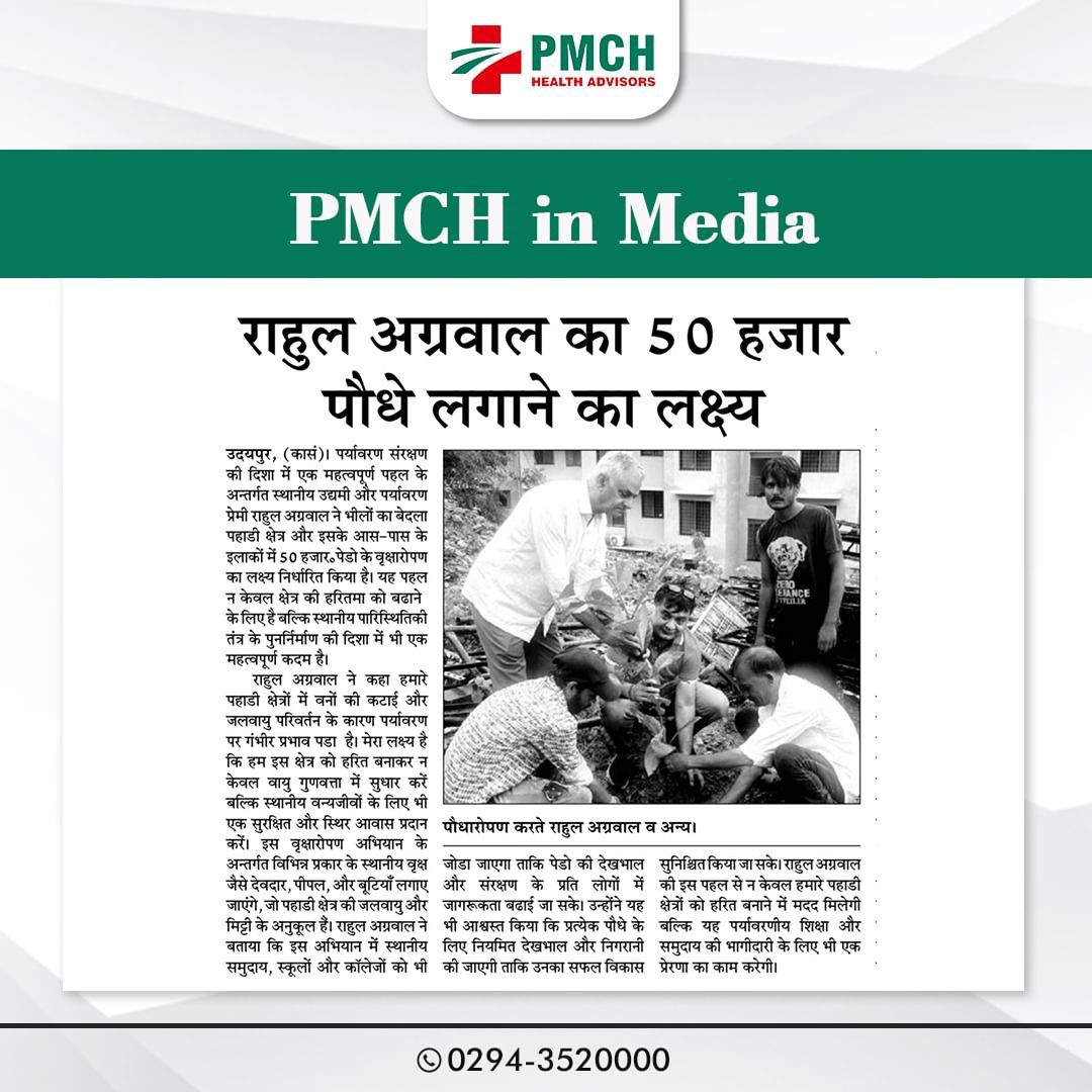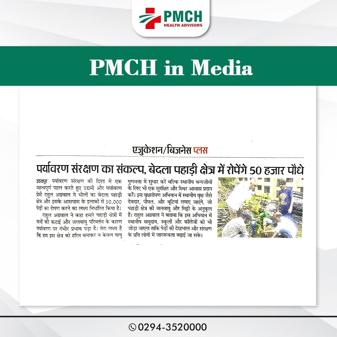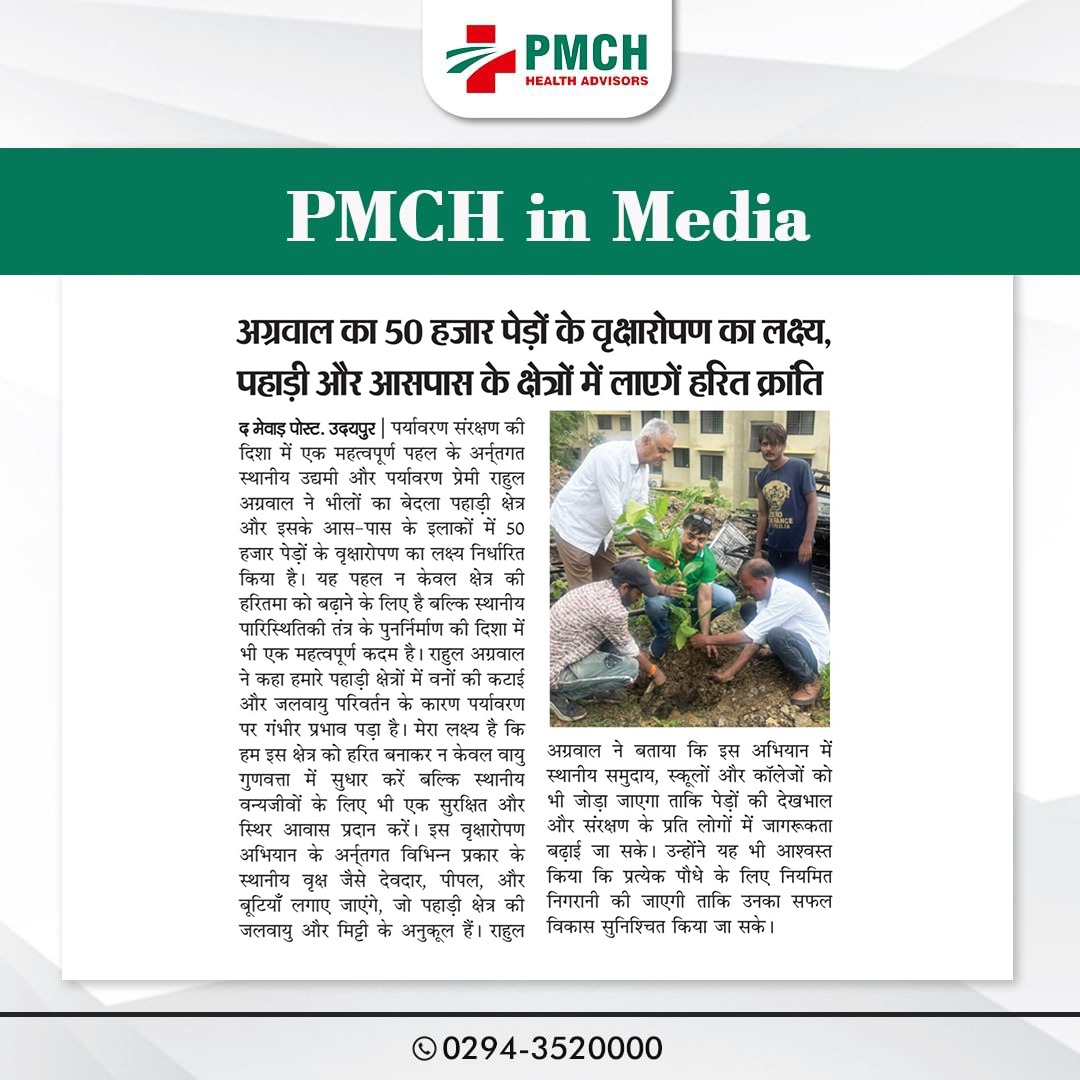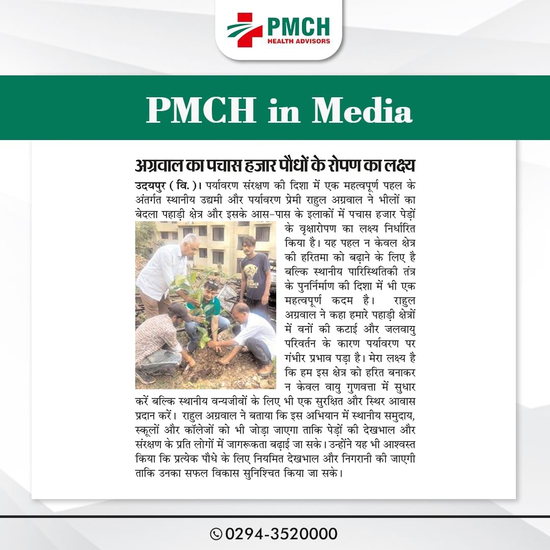 उदयपुर के पैसिफिक मेडिकल कॉलेज एंड हॉस्पिटल (PMCH) ने पर्यावरण संरक्षण के लिए 'एक पेड़ मां के नाम' अभियान के तहत 21 पेड़ लगाए। इस पहल से ग्लोबल वार्मिंग कम होगी और आने वाली पीढ़ियों को स्वच्छ वातावरण मिलेगा।