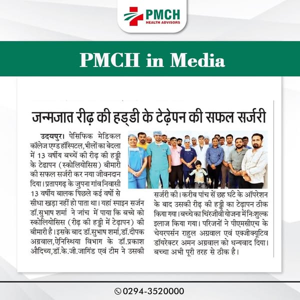 पीएमसीएच में चिकित्सा का एक और सफल कदम! जन्मजात रीढ़ की हड्डी के टेढ़ेपन से पीड़ित बच्चे की स्कोलियोसिस सर्जरी सफलतापूर्वक संपन्न की गई। हमारा समर्पण आपके स्वास्थ्य और खुशहाल जीवन के लिए!