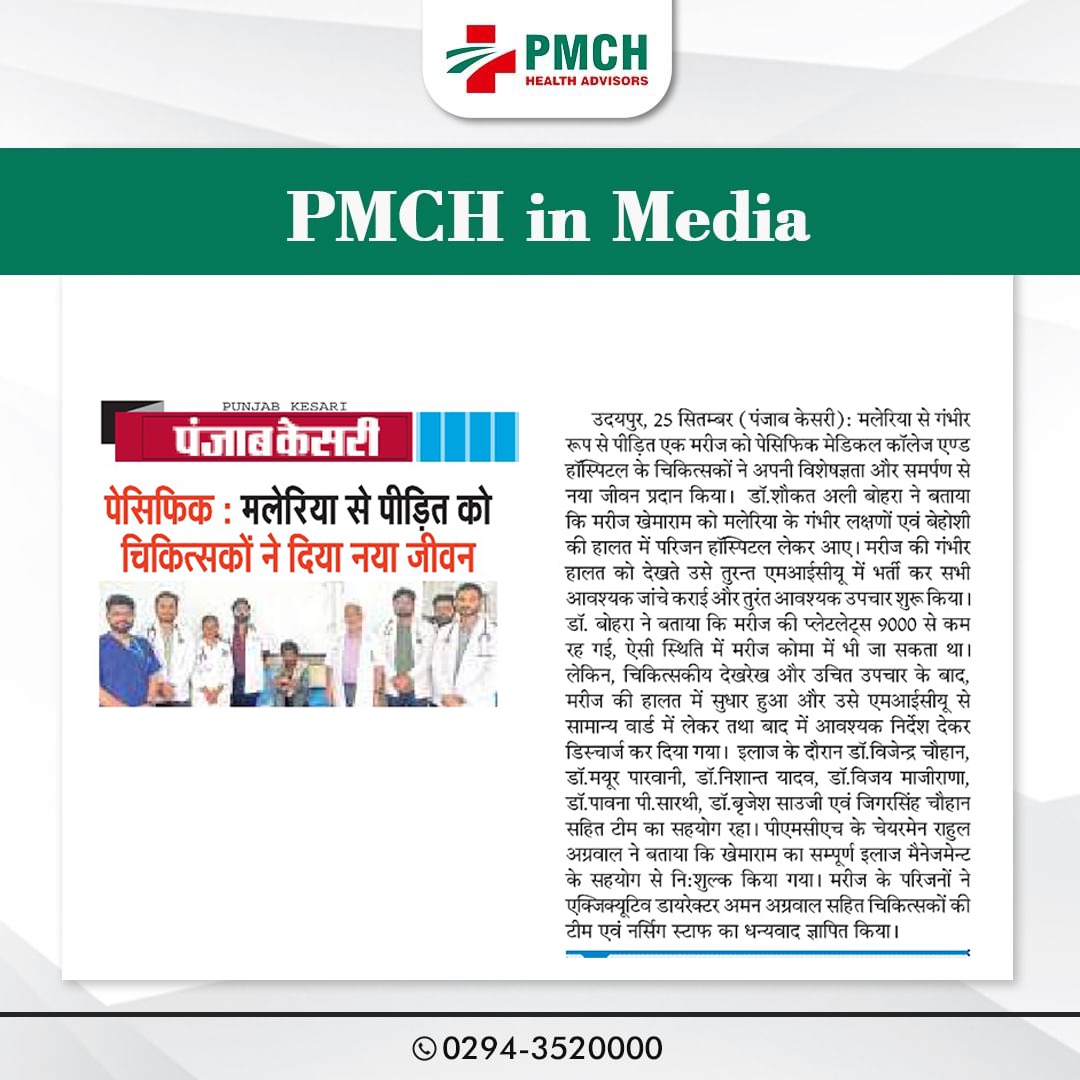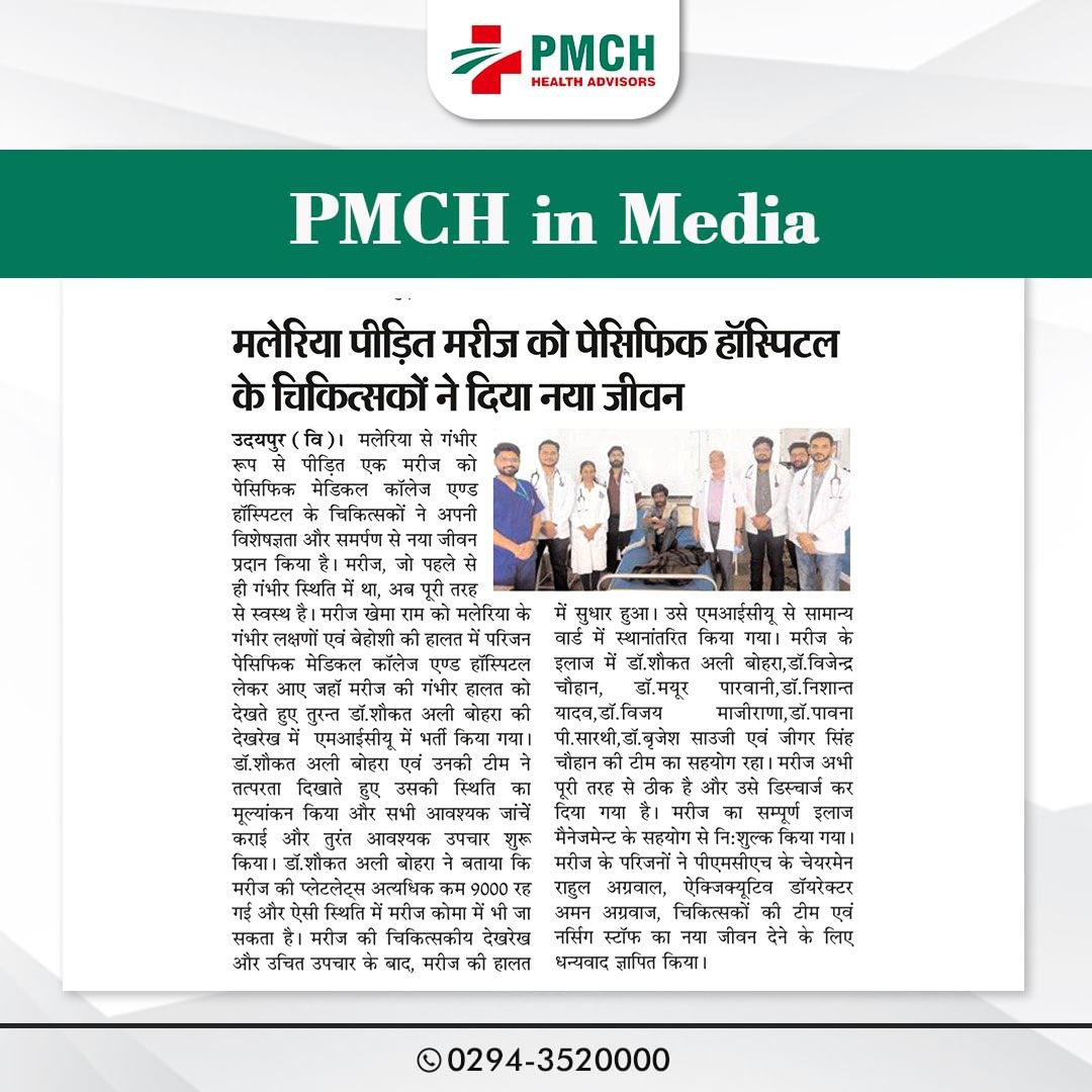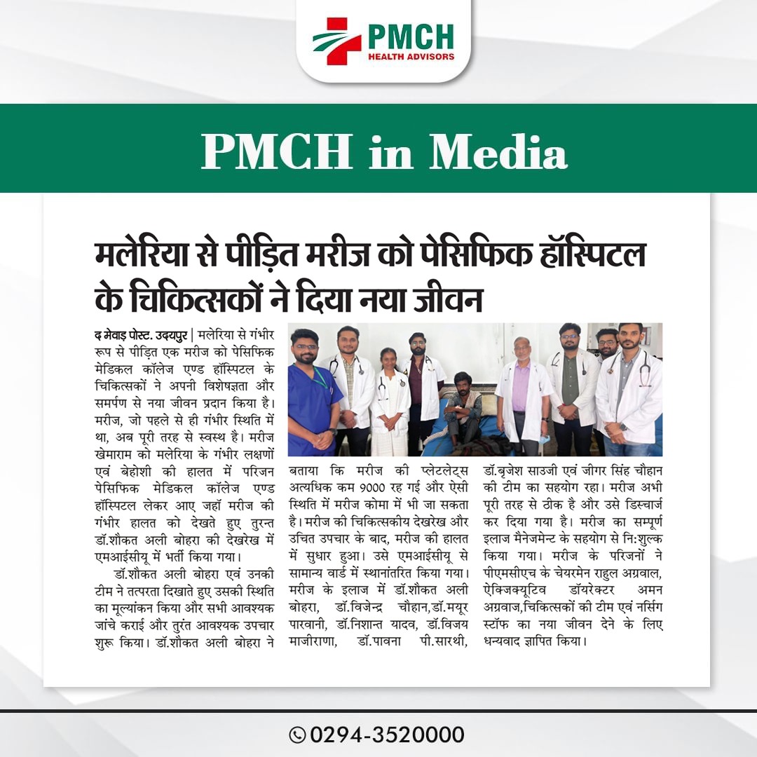पेसिफिक हॉस्पिटल के चिकित्सकों ने मलेरिया से जूझ रहे मरीज को नया जीवन दिया! उनके समर्पण और कुशलता से एक और जीवन सुरक्षित हुआ। हमें गर्व है हमारे डॉक्टरों पर, जो हर दिन लोगों की जान बचाने के लिए प्रतिबद्ध हैं।