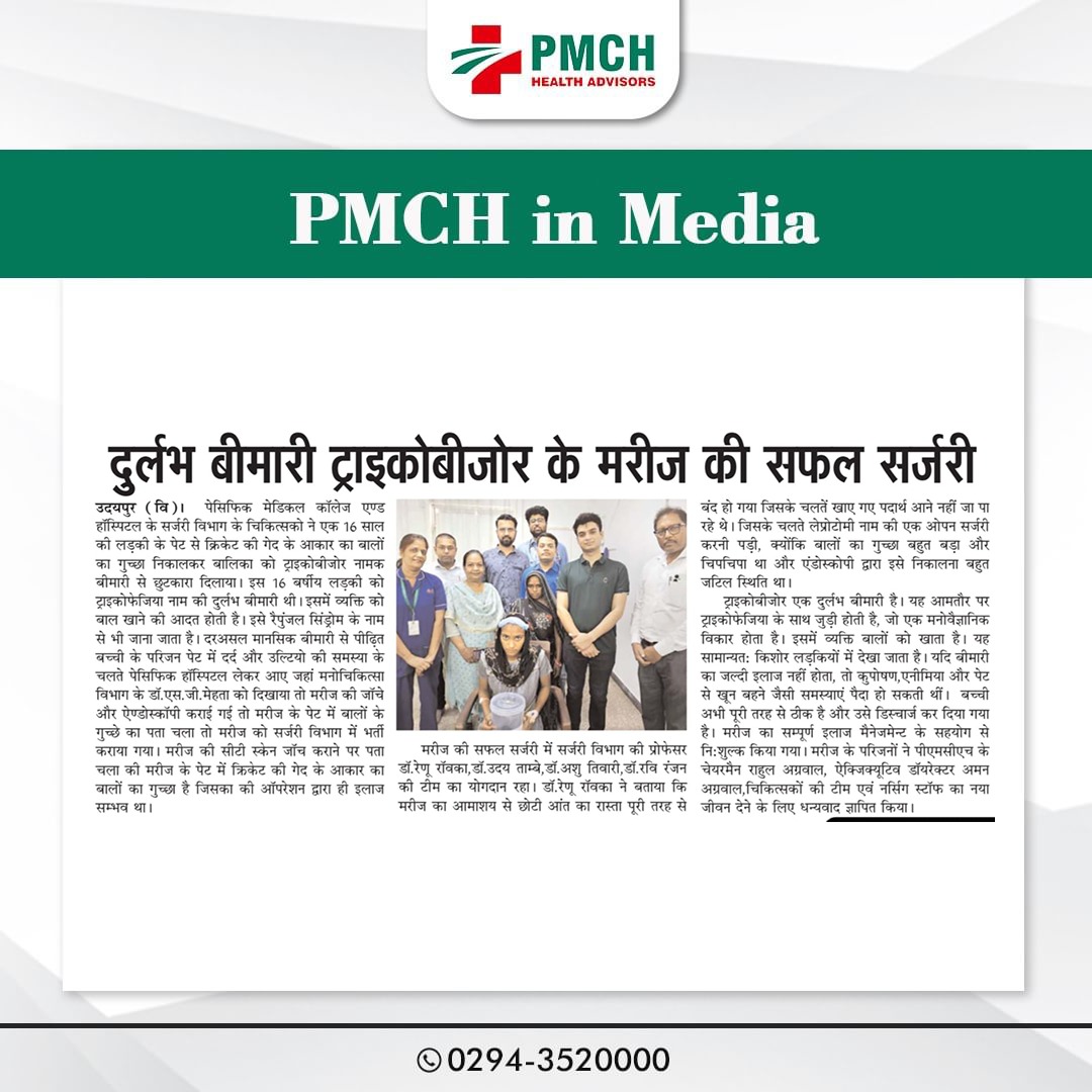 Pacific Hospital ने दुर्लभ बीमारी ट्राइकोबीजोर से पीड़ित मरीज की सफल सर्जरी कर चिकित्सा जगत में एक और सफलता हासिल की। हमारी विशेषज्ञ टीम ने असंभव को संभव बनाया, और रोगियों के स्वास्थ्य के प्रति हमारी प्रतिबद्धता अटूट है।